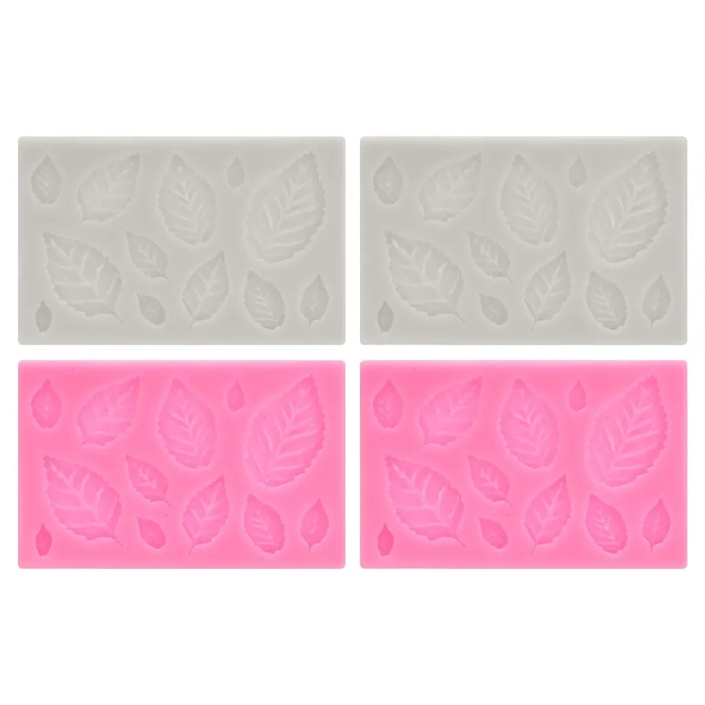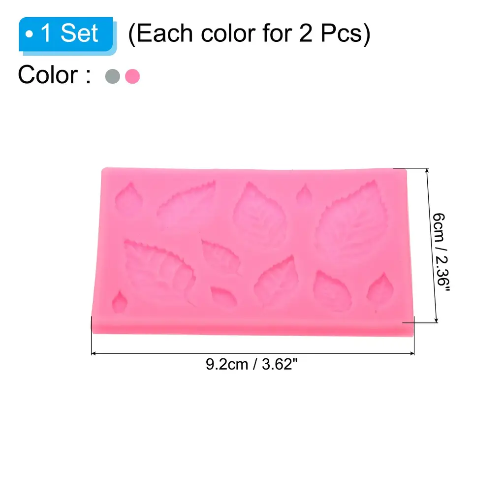 Polymer Clay Mold, Fondant Mold Leaf Mold Silicone, Pink Grey - 4Pcs