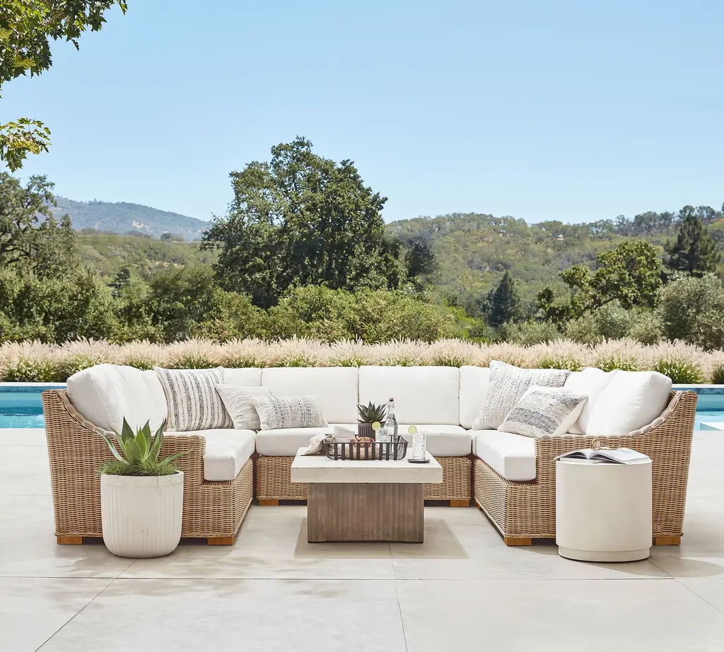 Modern and minimal, Pomona pairs opposites to sculptural effect. The combination of smooth, hand-poured concrete with slabs of grainy acacia gives each piece an appeal that endures the test of time and the elements. Mixing bright, sun-washed tones with warm wood also makes each piece a versatile partner for existing furniture inside or out.