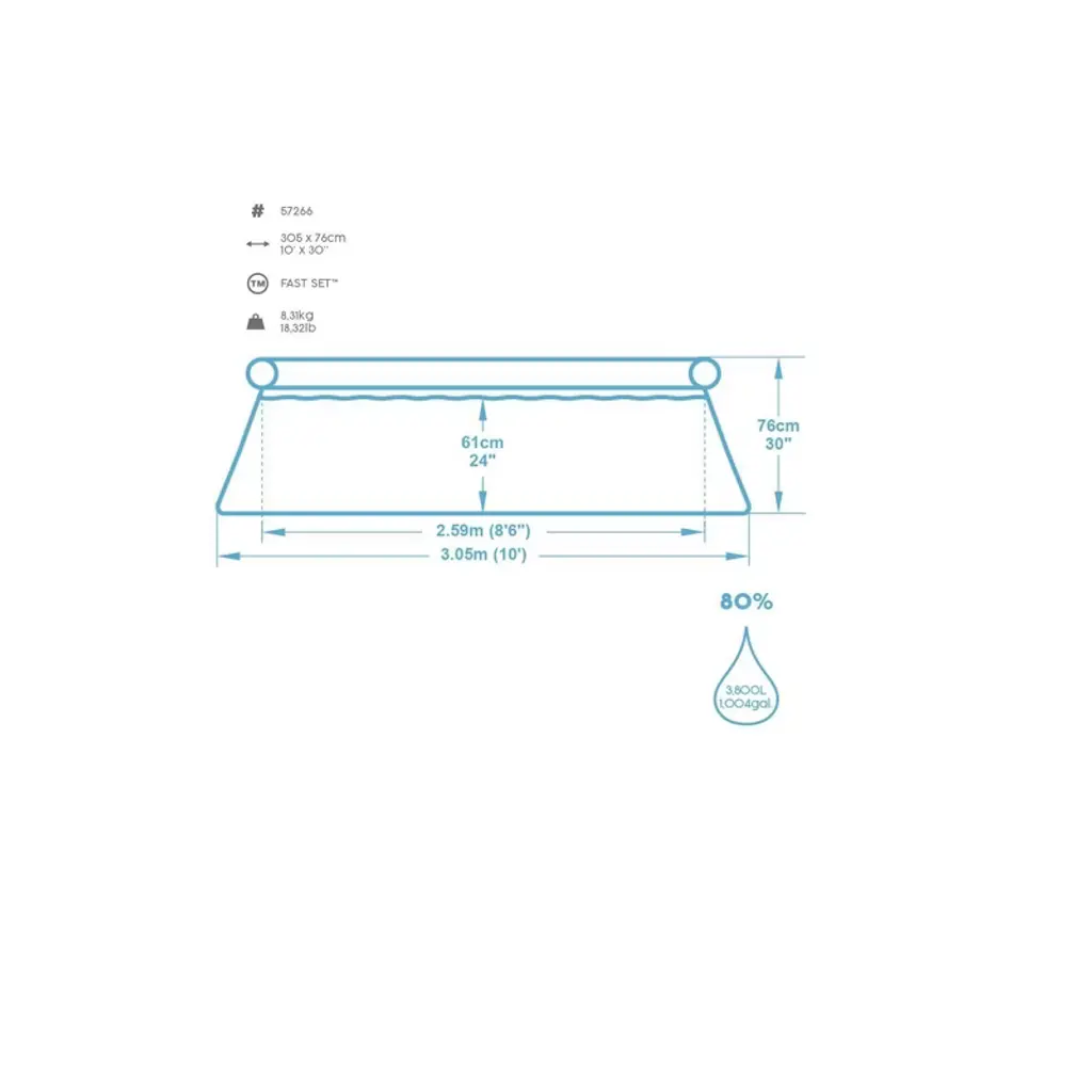 Stay cool this summer with our 10 foot inflatable easy set swimming pool. Good times are here with this spacious, fun, inflatable pool that is big enough for the whole family to enjoy. The comfortable blue and white wide sidewalls allow for ultimate lounging to make your summer experience unforgettable. This will become a quick, backyard favorite all summer long. Product Features: Inflatable top ring swimming pool Color: blue and white Puncture resistant liner Extra strong Tri-Tech sidewalls made with 3 layers of PVC and mesh create a durable material ensuring higher resistance and stability Self-supporting inflatable top ring Easy to set up, only takes 10 minutes of assembly Simply inflate the upper ring and the pool will rise as it's filled with water Features a built-in drain valve Compact storage easy deflation Includes pool filter pump The filter pump will keep your pool clean from debris by having a flow rate of 330 gallons per hour Air release valve for air trapped inside filter chamber For outdoor use only Suitable for ages 6 and up Cover and ladder are not included Dimensions: 30" high x 10' diameter Material(s): PVC