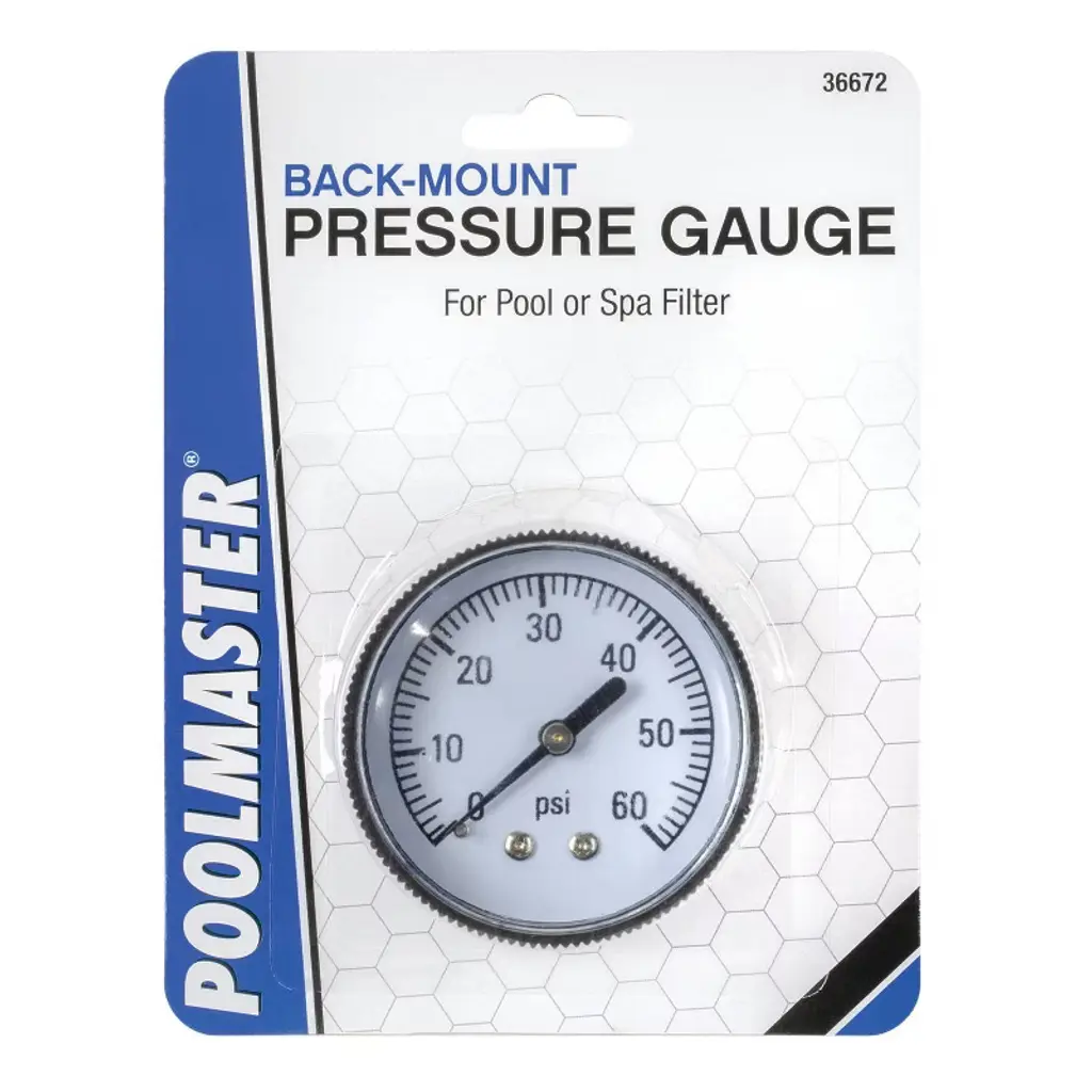 For accurate reading of your swimming pool filter pump's water pressure, Poolmaster’s Pressure Pool Filter Pressure Gauge is easy to read and install. Choose from a bottom-mounted or back-mounted style. Available in 1/4-inch thread fitting. Poolmaster's Maintenance Collection consists of the essential products for pool and spa maintenance. Items include skimmers and rakes, vacuums and hoses, water treatment tools, brushes and poles, accessories and replacement parts made in various styles, sizes, and quality materials. Items from the Maintenance Collection are constructed with durable materials designed to keep your pool sparkling.