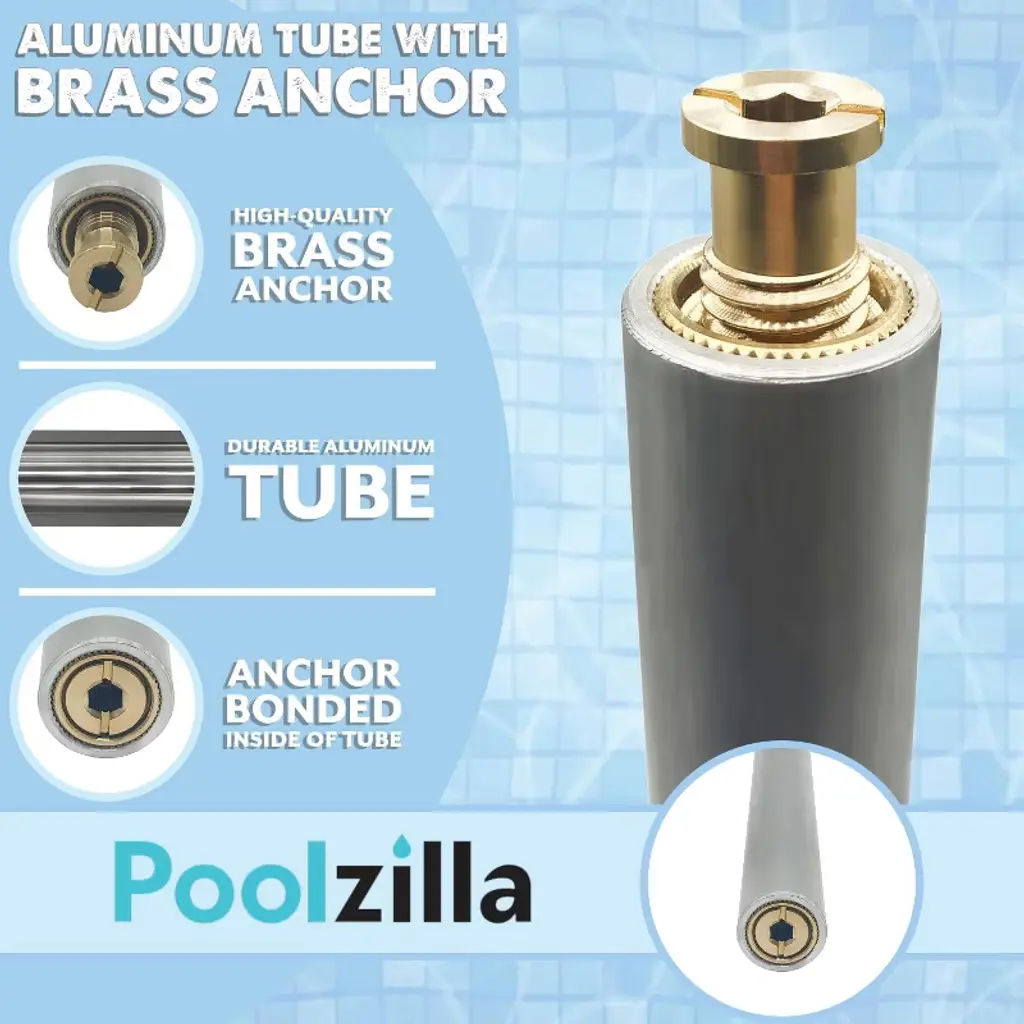 Poolzilla 18” Aluminum Tube With Brass Anchor For Pool Safety Cover Installation, (1 Pack)
