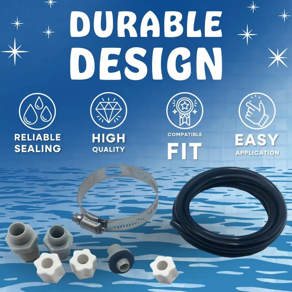 Poolzilla Offline Feeder Connection Pack - Compatible with Hayward CL200, CL220 Feeders | 02-12-026-MSTR Features and Benefits:💧【User-Friendly】Upgrade your pool with ease, thanks to our all-in-one pack, it offers a worry-free installation process. Prevents backflow of both pool water and chemicals, easily safeguard your equipment.💧【Compatibility】Compatible with Hayward Chlorine Feeders. | Models: Hayward CL200, CL220 Series.💧【Contents】The package includes Nuts, washer, saddle clamp, 4’ FT feeder tube, and check valve and inlet coupling assembly set.💧【Confirmation】Verify the part number and dimensions are suitable for your equipment.