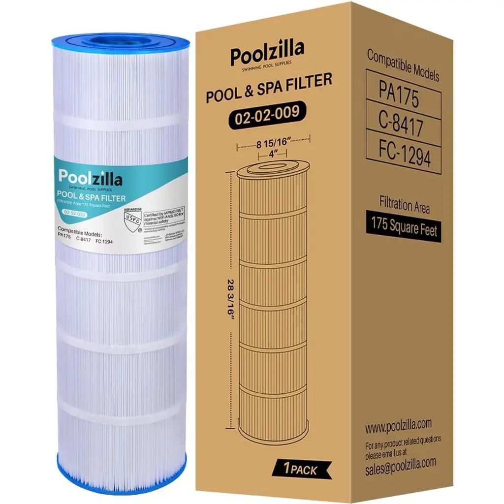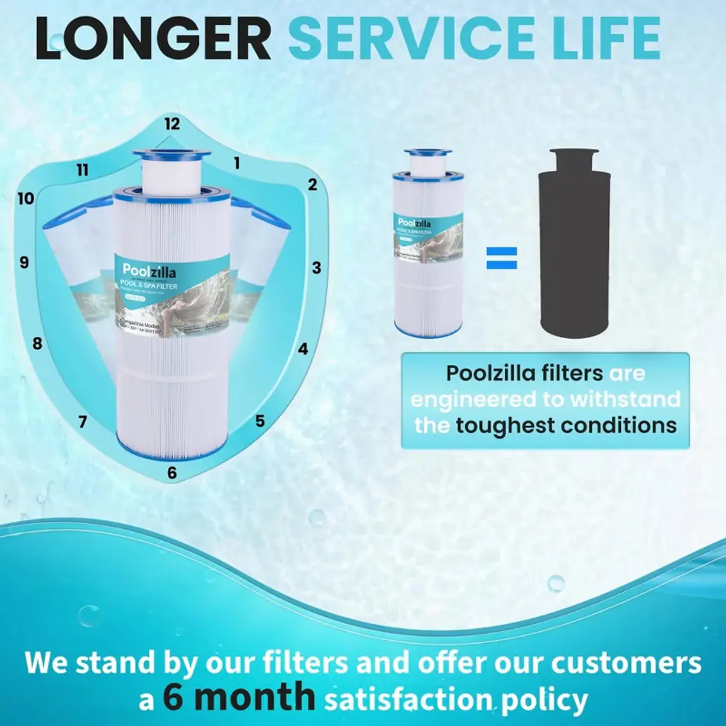 Outer Filter # 6473-165 and Inner Filter 6473-164 💧【Compatible Models】Length: 19 1/8"; Outside Diameter: 8 3/8"; Top Opening: 4"; Bottom Opening: 4". Replacement 6541-397 Filter Cartridge for Sundance MicroClean Ultra, Sundance 6541-397, AK-6541397, UFC-397. NOTE: This is a compatible spare part and the manufacturers' names and part numbers have been used for reference purposes only. Poolzilla is an independent brand.💧【Premier Performance】Our filters are engineered with “Dirt-Trap” technology that enables the filter to trap more contaminants than traditional round fabric. This results in a cleaner filtration system and a healthier swimming environment. Our filters effectively trap leaves, bugs, sediment, hair, and more.💧【Long Lifespan】Premium pleated fabric is durable in the harshest conditions. Even with significant contaminant buildup, our filters are designed to maintain maximum flow rates throughout the season. Cleaning the filter is easily done by removing and washing with water. Filter service life is around 1-2 years with proper maintenance.💧【Purified】Poolzilla filter cartridges offer enhanced water clarity by efficiently removing a variety of contaminants. Visible particles such as sediment, turbidity, sand, silt, and rust will easily be filtered out. Additionally, chlorine taste and odor can significantly decrease with continued use of our cartridges.💧【Quality Customer Service】Poolzilla cares deeply about the integrity of our products. We promise a risk-free shopping experience fully backed by our Quality Control, Customer Service and Technical Support Teams, located in New Jersey.