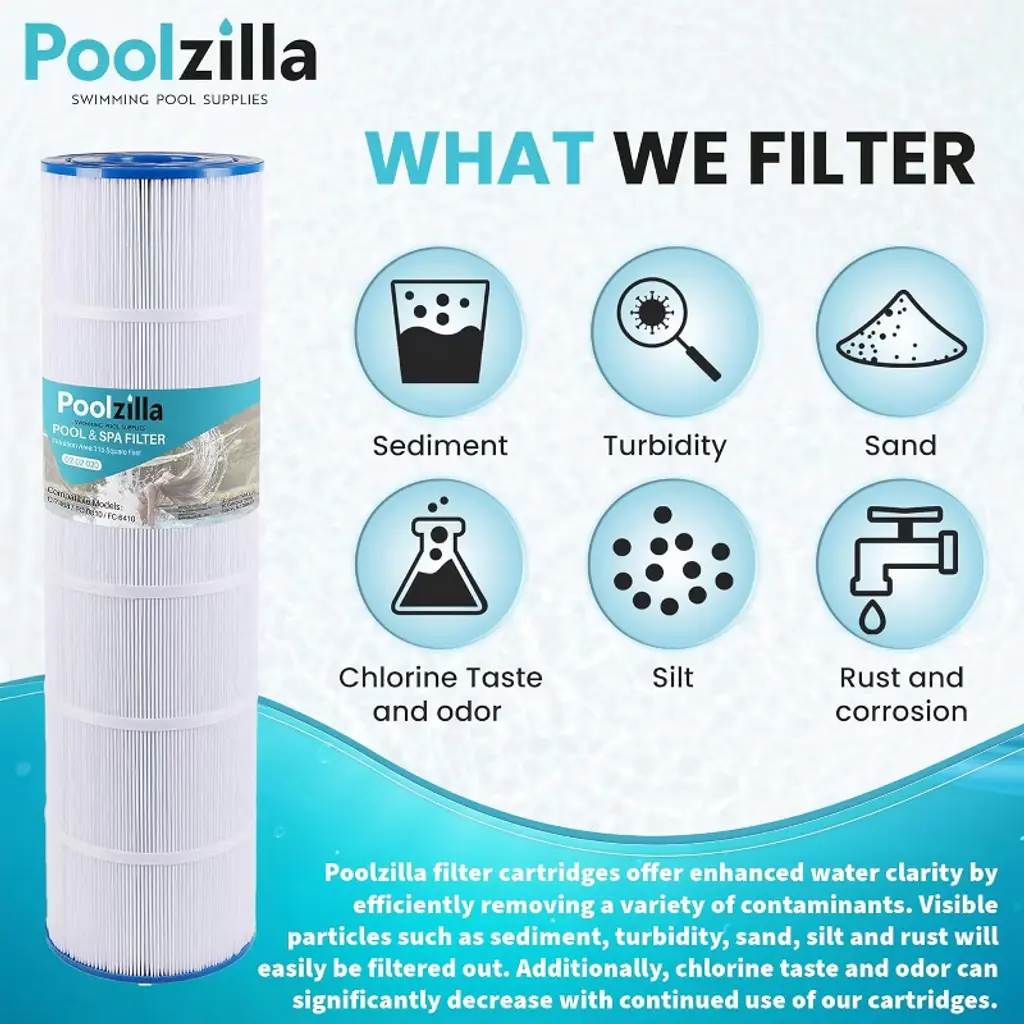 💧【Compatible Models】This filter catridge is compatible with Unicel C-7468, Jandy CL 460, CV460, PJAN115, FC-0810, Excel Filters XLS-705, FC-641, Aladdin 21501, Baleen AK-60432 - NOTE: This is a compatible spare part and the manufacturers' names and part numbers have been used for reference purposes only. Poolzilla is an independent brand. 💧【Long Lifespan】Premium pleated fabric is durable in the harshest conditions. Even with significant debris buildup, our filters are designed to maintain maximum flow rates throughout the season. Cleaning the filter is easily done by removing and washing with water. Filter service life is around 1-2 years with proper maintenance.💧【Contents】(4) C-7468 Replacement Filters.💧【Purified】Poolzilla filter cartridges offer enhanced water clarity by efficiently removing a variety of contaminants. Visible particles such as sediment, turbidity, sand, silt, and rust will easily be filtered out. Additionally, chlorine taste and odor can significantly decrease with continued use of our cartridges.💧【Quality Customer Service】Poolzilla cares deeply about the integrity of our products. We promise a risk-free shopping experience fully backed by our Quality Control, Customer Service and Technical Support Teams, located in New Jersey.