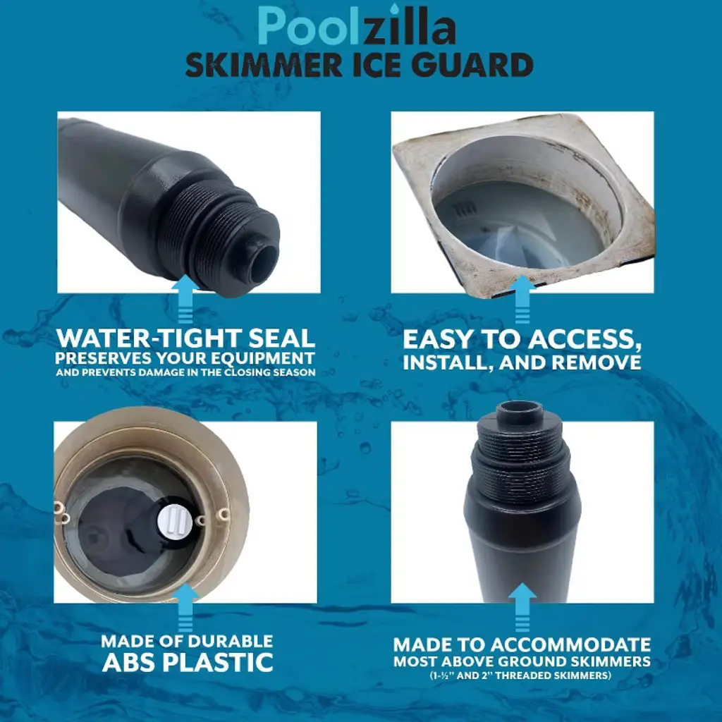 ❄️【Hassle-Free Winterization】The Poolzilla Skimmer Winterizing Plug creates a water-tight seal that helps to preserve your equipment and protect it from preventable damage in the closing season. The plug works by contracting during the freezing process, absorbing water pressure that would otherwise cause damage to your skimmer. Before installation, ensure the plumbing has been completely cleared and there is no water in the system. ❄️【Dimensions】Made to accommodate most above ground skimmers, 9’’ length and for 1-1/2" and 2" internal skimmer threads. ❄️【Durability To Last To Spring】Made of durable ABS plastic, this winter plug is built to withstand harsh winter conditions. All components have gone through rigorous testing to ensure a worry-free winter and a seamless pool opening when the warmer days return.❄️【100% Assurance Policy】Poolzilla cares deeply about the integrity of our products. We promise a risk-free shopping experience fully backed by our Quality Control, Customer Service and Technical Support Teams, located in New Jersey.