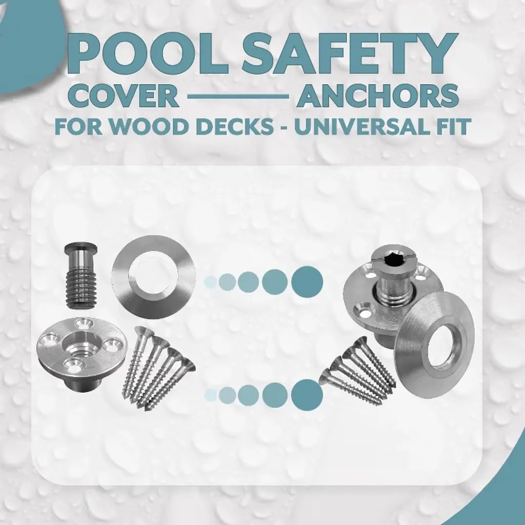 ⭐【Compatibility】Universal fit that works with all pool covers whether inground or above ground.⭐【Dimensions】The wood deck anchor is 1” long and fits into a ¾” hole. The diameter of the anchor is 1.5”. The beauty collar has an inside diameter of 9/16” and an outside diameter of 1-½”.⭐【Contents】Includes wood deck anchors with beauty collars.⭐【Premium Materials】Poolzilla pool cover hardware is made with the finest and most durable metals. Our hardware is factory tested to outlast even the harshest conditions, ensuring durability and safety of your pool cover all winter long.🌩️【Weather Proof】Rough winter conditions are no problem for Poolzilla wood deck anchors. The premium stainless steel material is built to keep your safety cover locked in during intense winds and heavy snow.