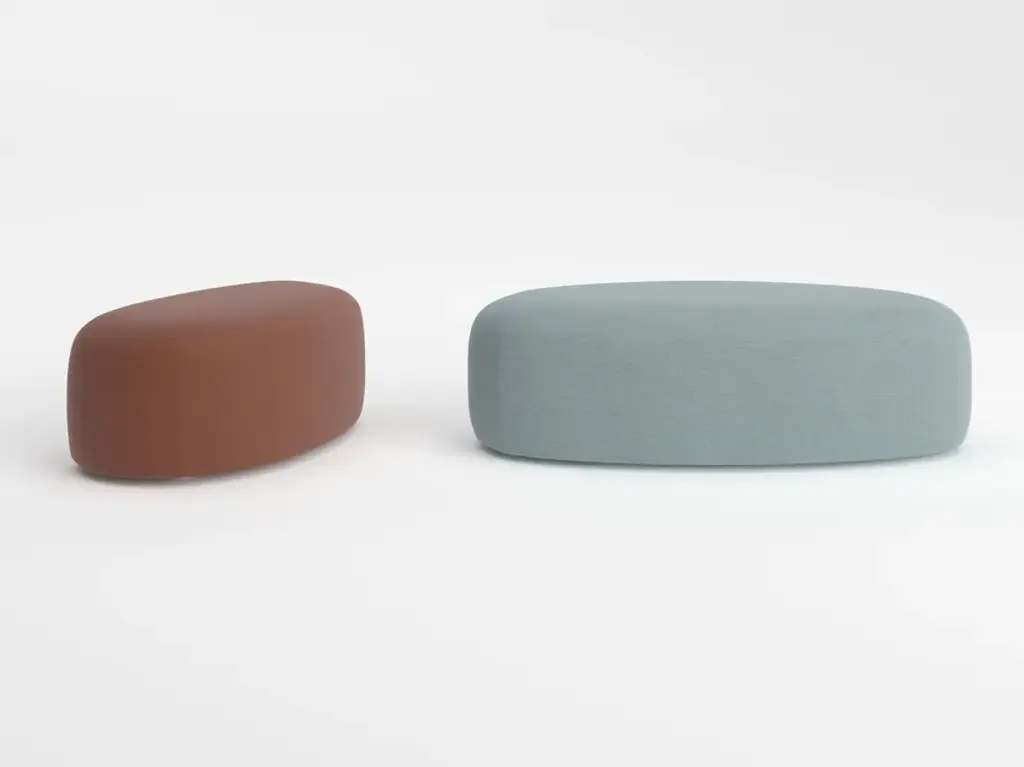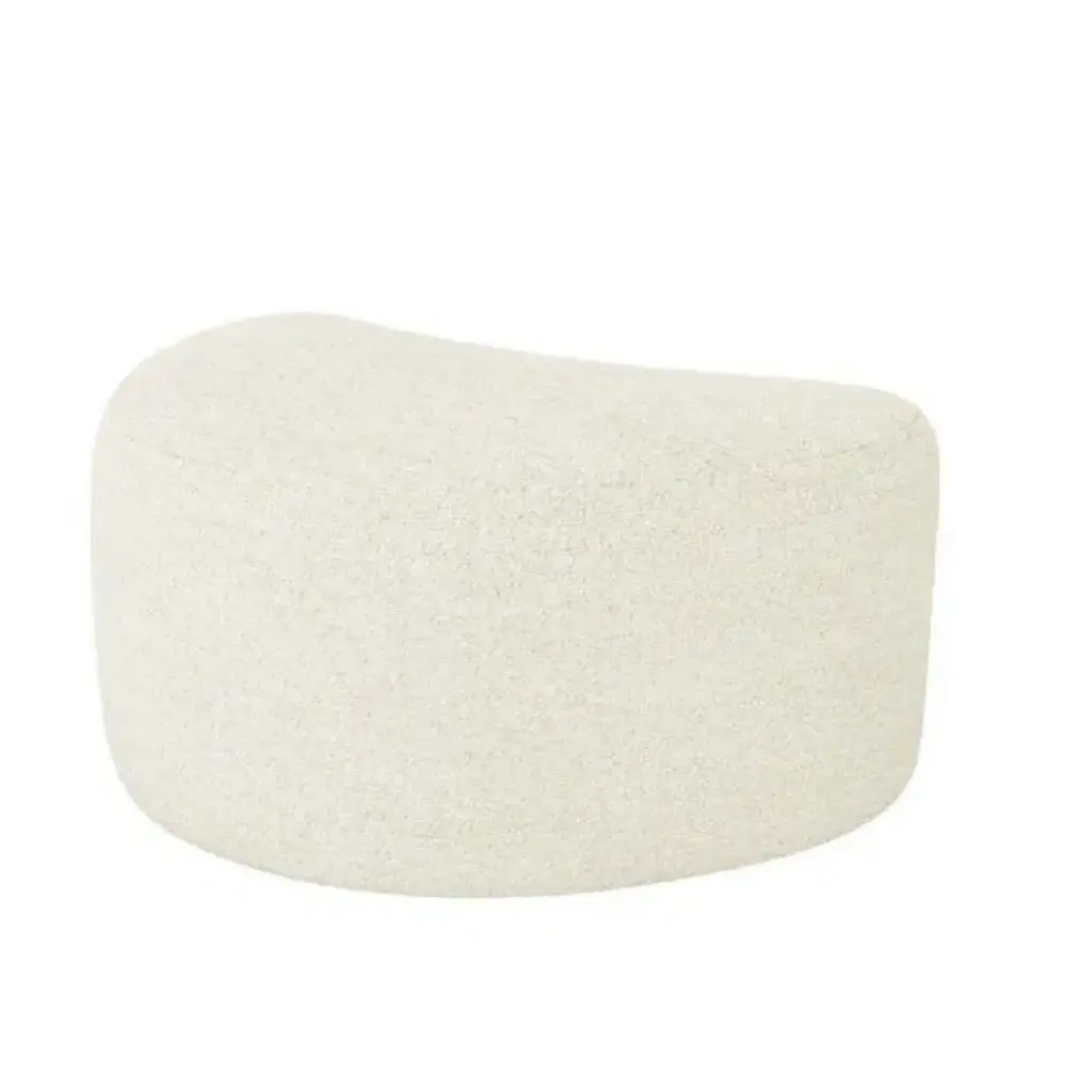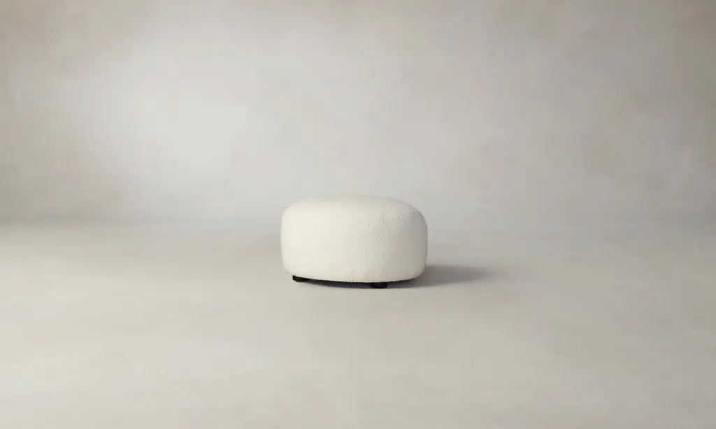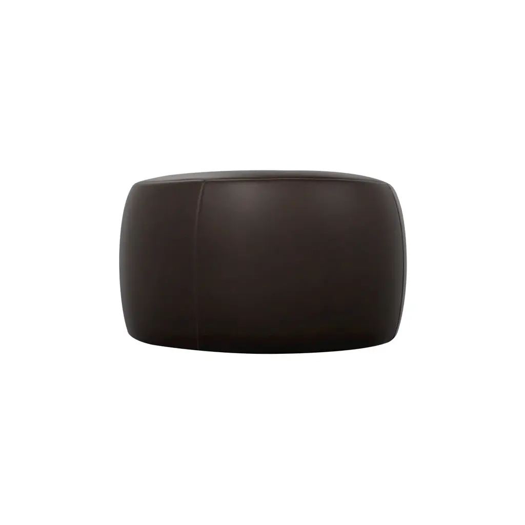 Moooi goes Pooof in a compact version of its versatile ottoman. With a pleasing round shape that complements nearly any sofa., it easily shifts from serving as a footrest to extra seating. With a soft but solid touch, the piece is fashioned in multiple density cut foam over a wood frame and upholstered in basic white fabric with a fabric or leather removable custom cover.