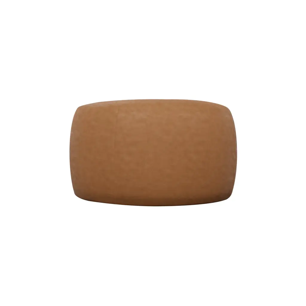 Moooi goes Pooof in a compact version of its versatile ottoman. With a pleasing round shape that complements nearly any sofa., it easily shifts from serving as a footrest to extra seating. With a soft but solid touch, the piece is fashioned in multiple density cut foam over a wood frame and upholstered in basic white fabric with a fabric or leather removable custom cover.