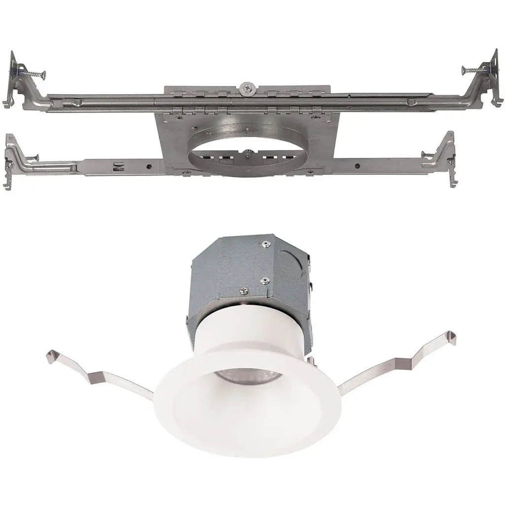 Pop-in is a powerful 1,000 Lumen minimum profile shallow regressed recessed downlight with a driver and electrical connection junction box attached to the fixture for an easy installation. The new construction version includes a frame-in kit for installation in a new construction application. The remodel version does not includes frame-in kit, but it can be purchased separately (R4DRDN-FRAME). An on-board 5-CCT selectable switch allows you to toggle between different color temperatures to find the perfect setting for your space. Change between 2700K Warm - 3000K Warm White - 3500K White - 4000K Cool White - 5000K Natural White all at the flick of a switch. The color temperature selectable switch can be accessed during, before, and after installation - it is safely concealed inside the fixture and can be accessed by removing the twist-lock diffuser.