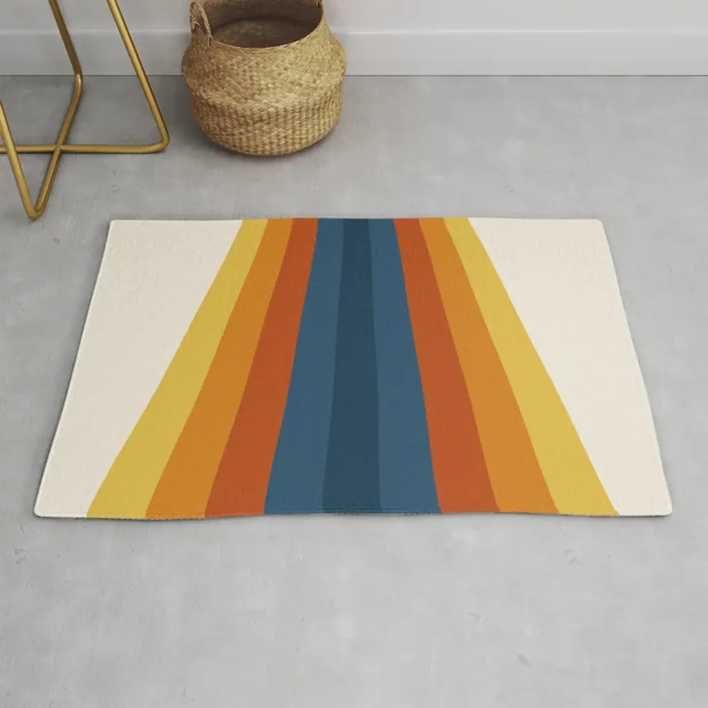 Bringing together bold hues, dynamic lines, and tufted texture, this lively take on classic stripes reimagines the rainbow. Bands of color are softened by their interplay with white, creating a surface that can complement a range of palettes and styles. With a backing of hardworking vinyl, Shag mats are ideal for bathrooms, outdoor terraces, pool areas, and entryways. Good in all weather. Quick to dry. Resistant to mold, mildew, and chlorine. Features