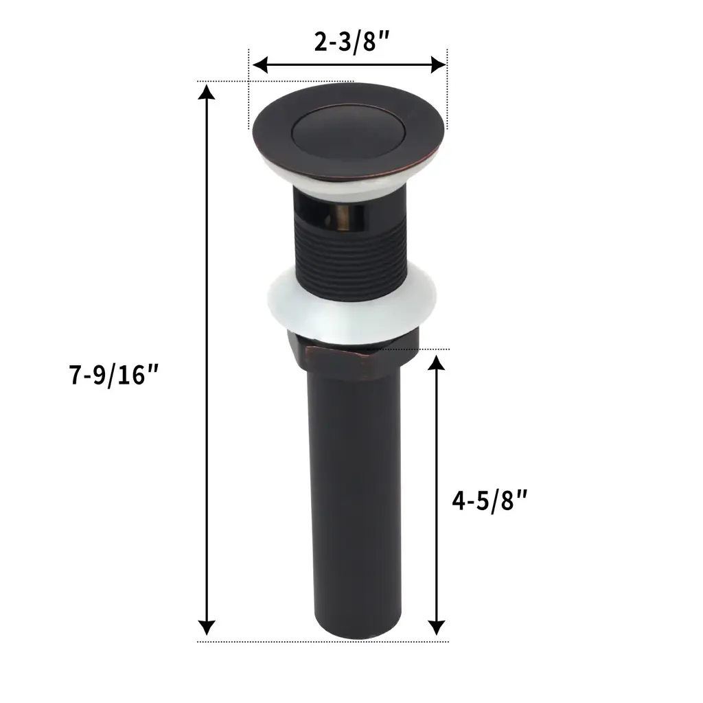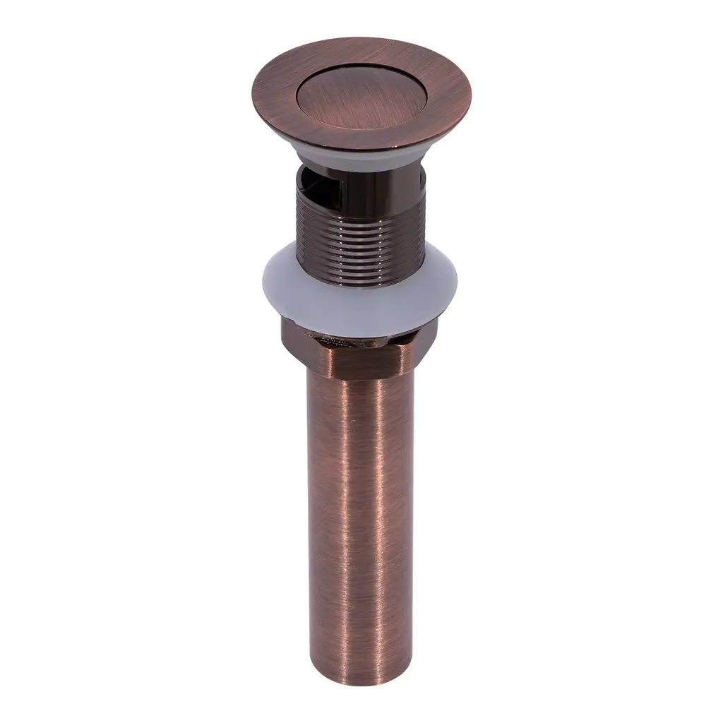 Pop up Antique Copper Finish Bathroom and Kitchen Sink Drain Lavatory Sink Stopper Without Overflow Made of Copper-Akicon (POP UP) ◆Pop Up Sink Drain with Overflow hole ◆Smooth convenient push-button operation, water-tight seal ◆Easy assembly, easy cleaning ◆Brand new, splendid necessities for your bathroom vessel sink ◆Fit for most sinks with drain hole from 1-1/2" to 2" in diameter and with overflow hole