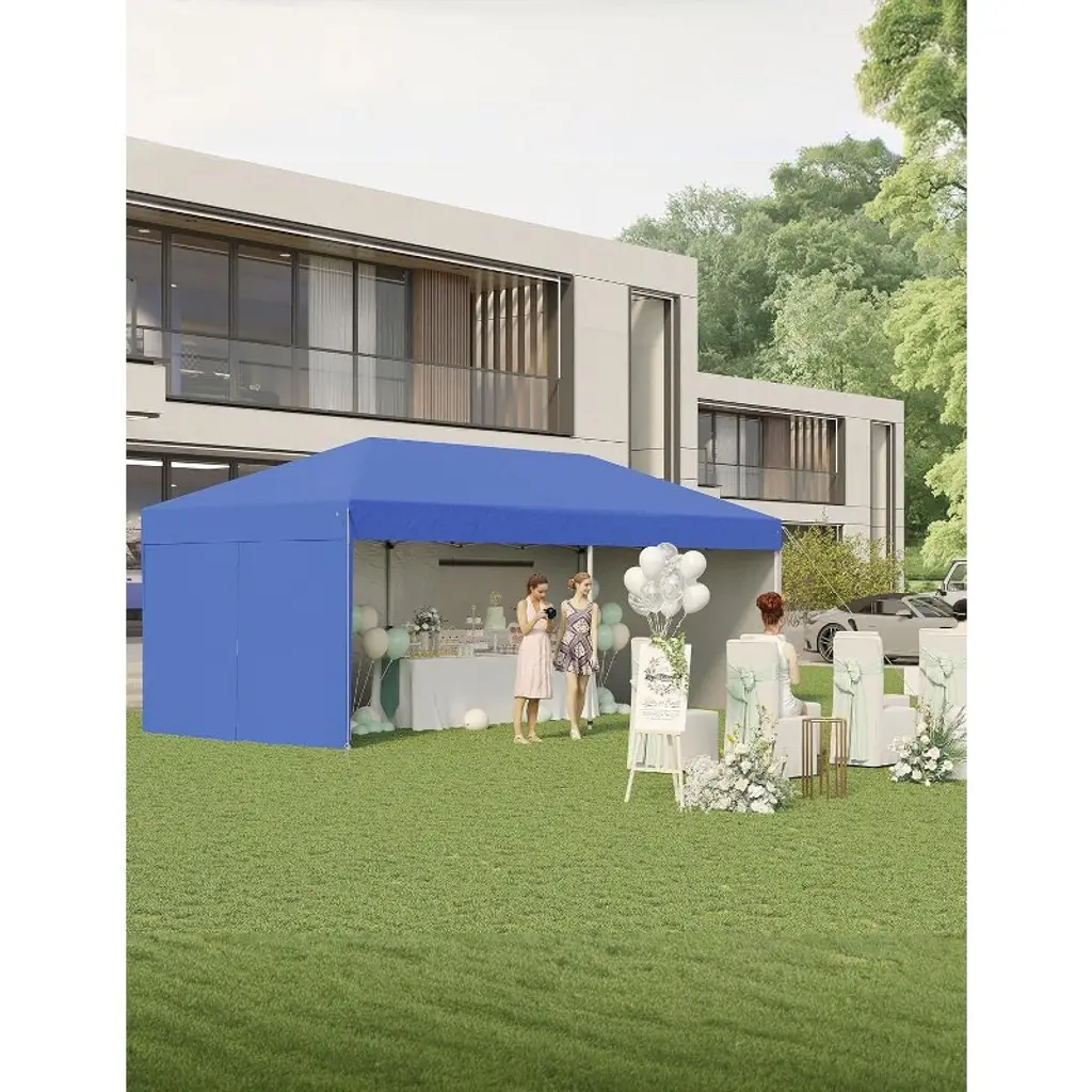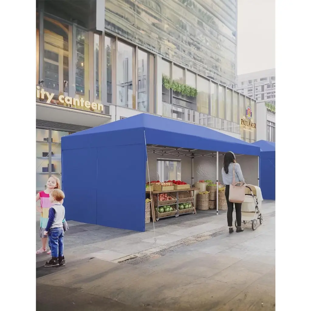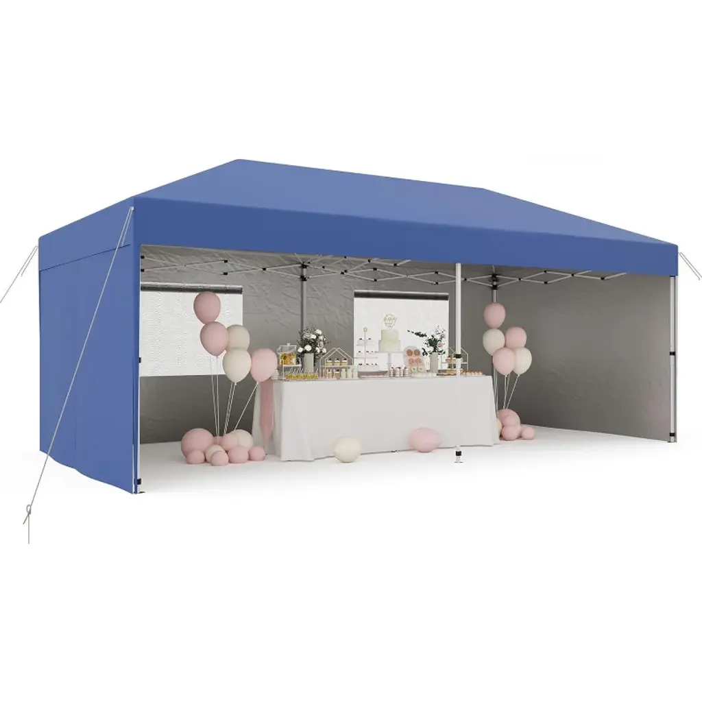 10'x20' Instant Pop-Up Canopy Tent - Quick One-Push Assembly Sun Shelter for Outdoor Events, Parties, Camping & Commercial Use, Includes 6 Removable Sidewalls, Portable Wheeled Carry Bag, With a sophisticated central locking system, this canopy tent opens and closes effortlessly. Just engage the lock—no tools needed—and assemble it in minutes. Three adjustable leg heights suit various scenarios. Six detachable sidewalls let you customize for privacy or weather protection, ensuring flexibility and functionality.