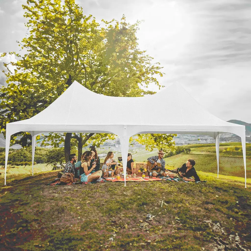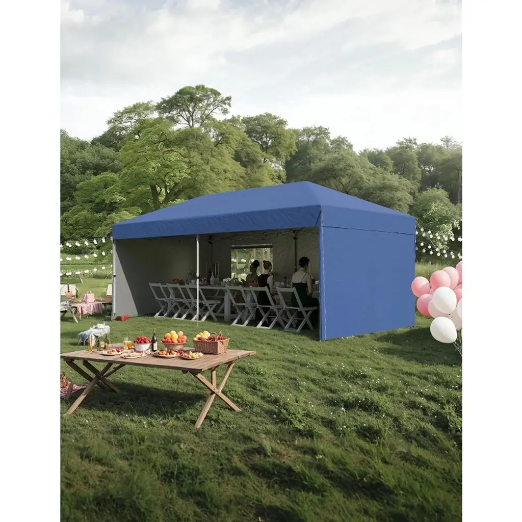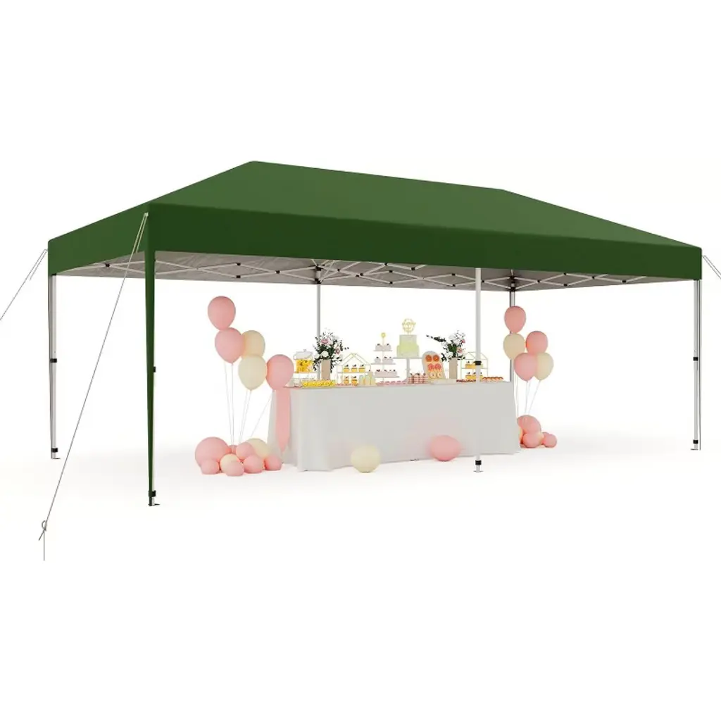 10'x20' Instant Pop-Up Canopy Tent - Quick One-Push Assembly Sun Shelter for Outdoor Events, Parties, Camping & Commercial Use, Includes 6 Removable Sidewalls, Portable Wheeled Carry Bag, With a sophisticated central locking system, this canopy tent opens and closes effortlessly. Just engage the lock—no tools needed—and assemble it in minutes. Three adjustable leg heights suit various scenarios. Six detachable sidewalls let you customize for privacy or weather protection, ensuring flexibility and functionality.