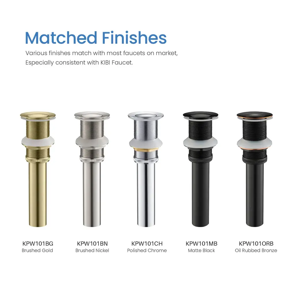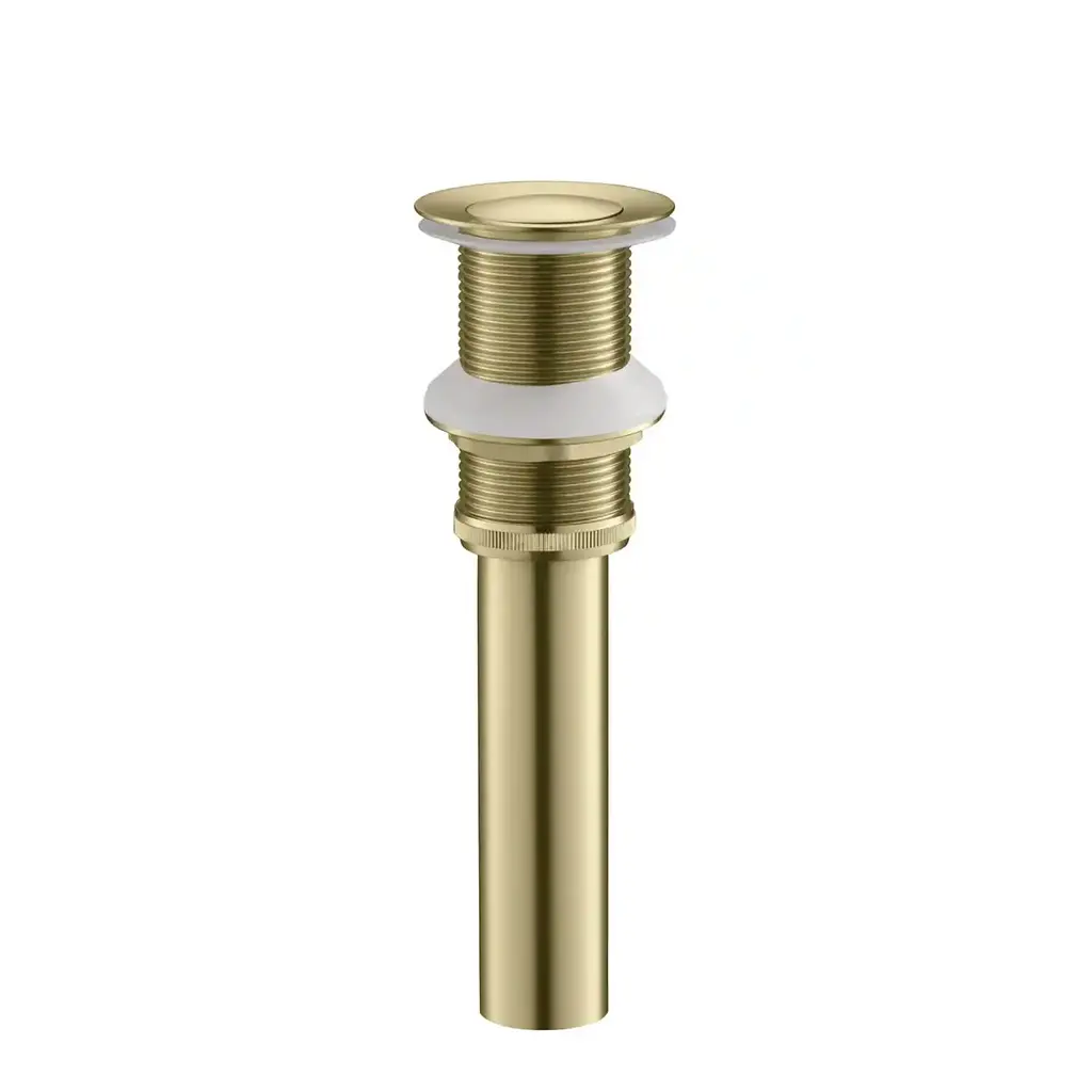🏠Standard 1-3/4" drain opening: fits sink hole diameter 1-5/8" to 2-5/16". max sink thickness 2".🏠Ideal for any above-counter vessel sink without an overflow hole.🏠Guaranteed 50,000 smooth bounce times.🏠The sturdy brass metal structure ensures corrosion resistance, rust prevention, and maximum durability.🏠Four layers of superior finishes surpass industry durability standards, will not fade over time.🏠Easy to install: drain, thin rubber washer, thick rubber washer, hard washer, drain nut, the tail piece are all included. please follow the installation guide to ensure no leak.🏠Limited lifetime warranty for all mechanical parts, 5 years warranty for finishes.