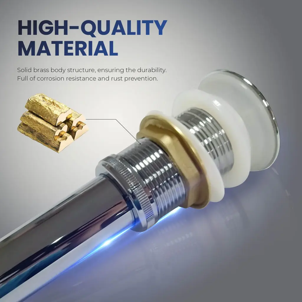 Pop Up Drain Stopper For Bathroom Without Overflow - Chrome White