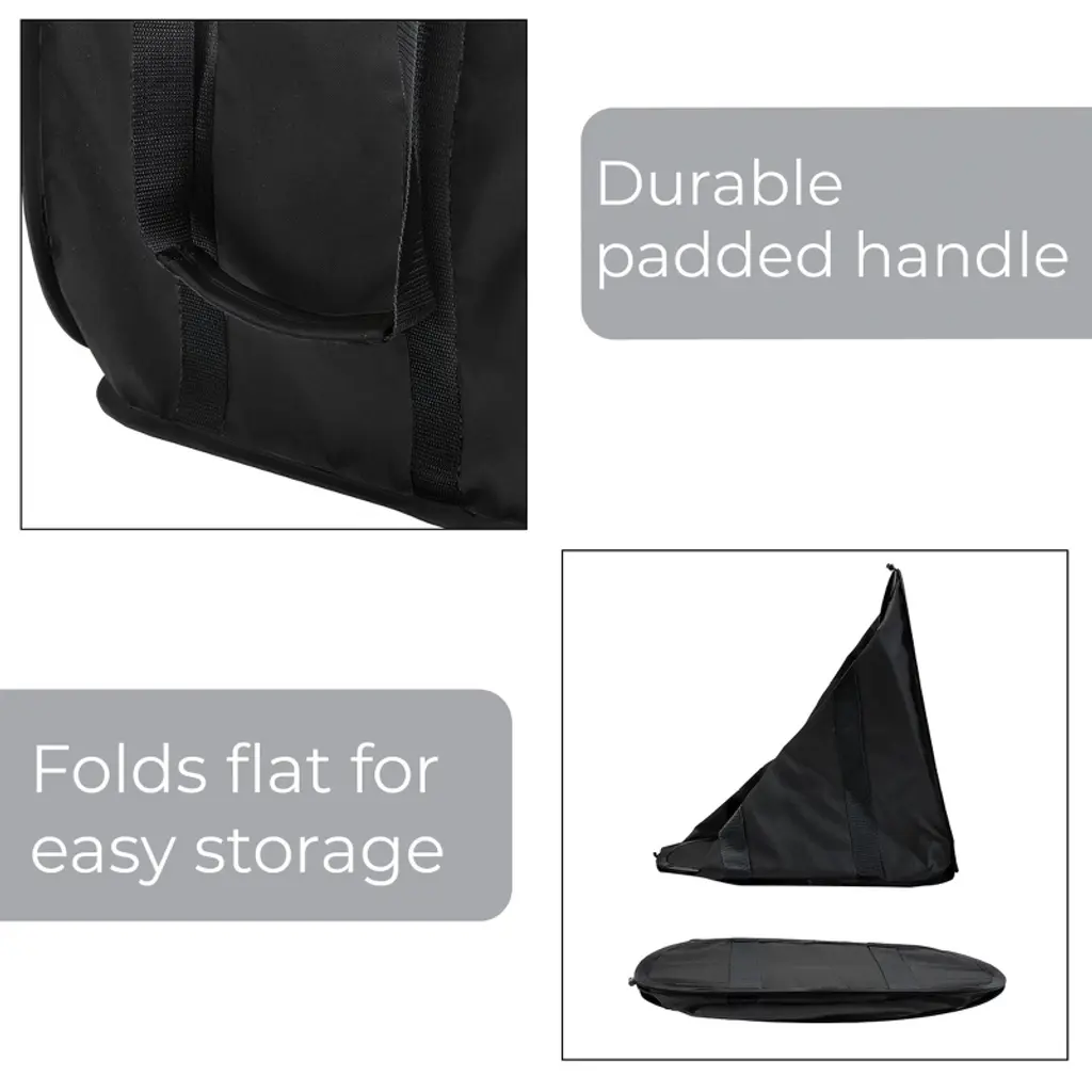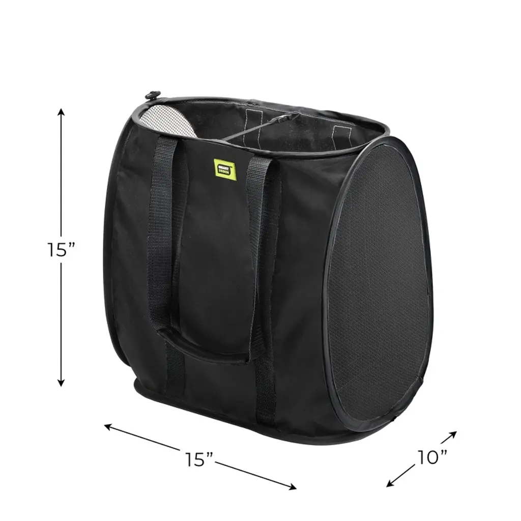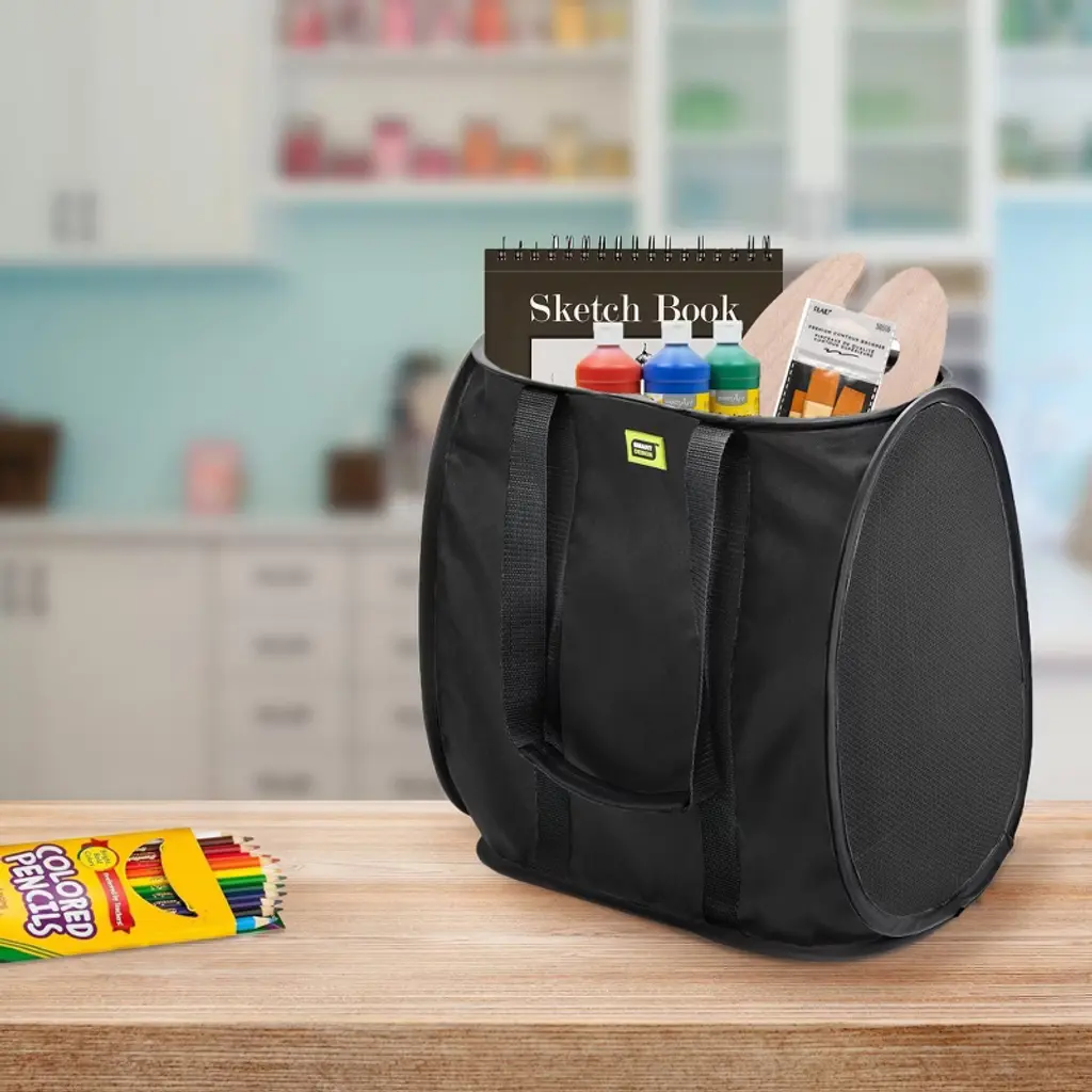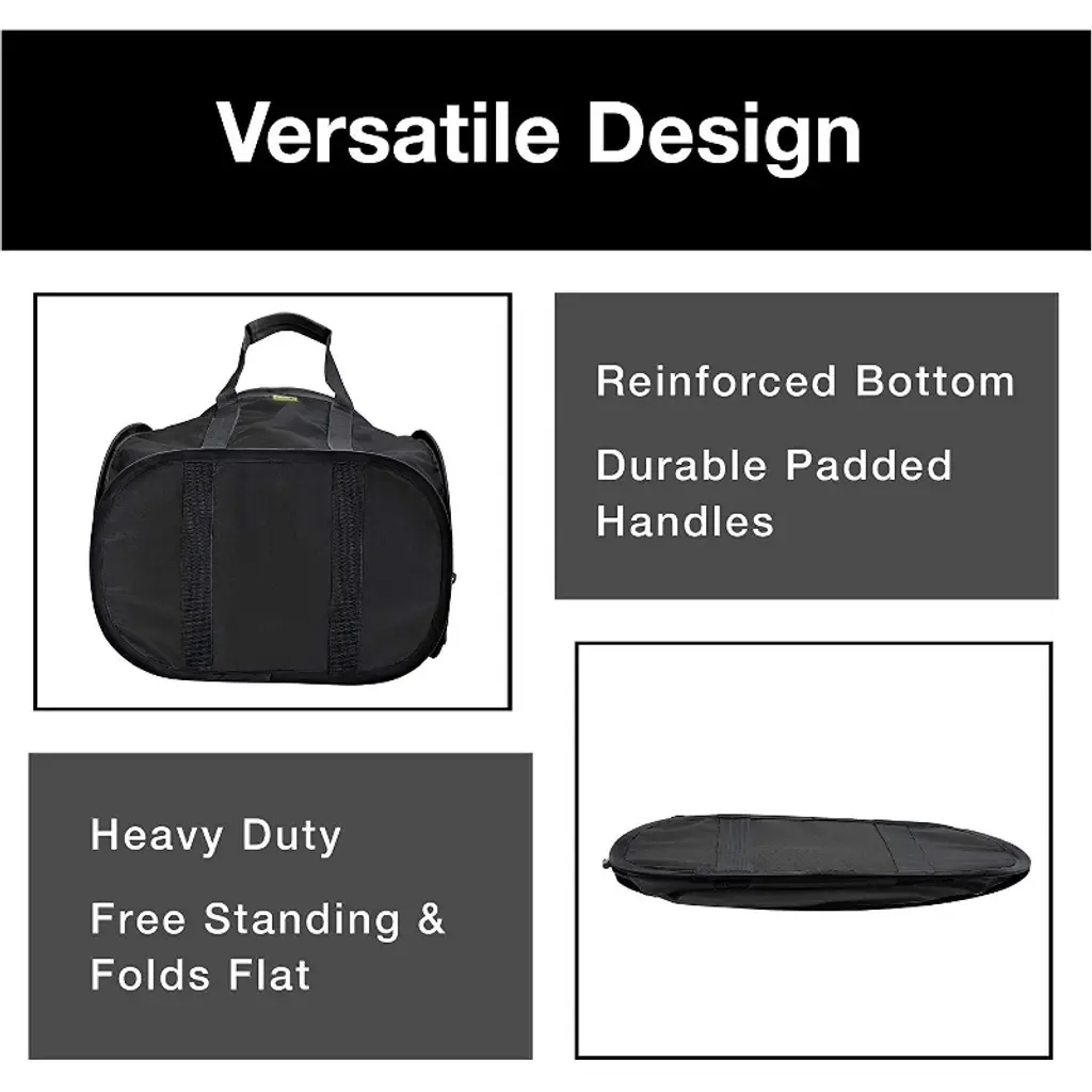 Smart Design Pop Up Shopping Bags Pack groceries, baby items, & more inside the Pop Up Shopping Bag, pull the elastic strap, lock the clasp, and get going! Your items will remain safe, secure, and protected in the car or while shopping or on the move w/ the tension loop steel frame keeping the bag upright. Package Includes Large Pop Up Shopping Bag design folds flat when not in use for maximum storage-saving space. The durable design & reinforced bottom holds multiple items w/ ease & open top allows for instant loading & unloading. Features & Benefits Pop Up Shopping Bags are reusable and have durable padded handles for easy portability and travel. Keeps your items safe and protected with the elastic strap & clasp lock to hold items in place in moving vehicles or while carrying. Product Specifications Dimensions: 15(L) x 10(W) x 15(H) inches Bag Size: Large Color: Navy w/ Gray Trim Material: Heavy Duty Polyester Design: Pop Up w/ Tension Loop Steel Frame Holds: Groceries, Baby Items, & Storage