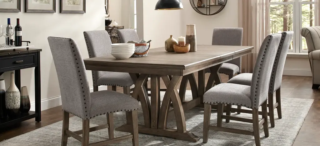 The Poplar Hills dining table w/ Leaf showcases an elegant design starting with the medium-toned wood finish. Crafted of solid hardwood and featuring a 20" extension leaf, Poplar Hills will effortlessly draw the eye and dress up your dining room. Matching Table Protector