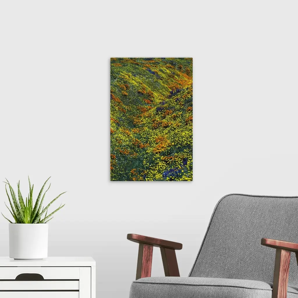 Poppy and coreopsis flowers blooming in field, California wall art for home and office decor. Discover canvas art prints, photos, mural, big canvas art and framed wall art in GreatBigCanvas.com's varied collections.