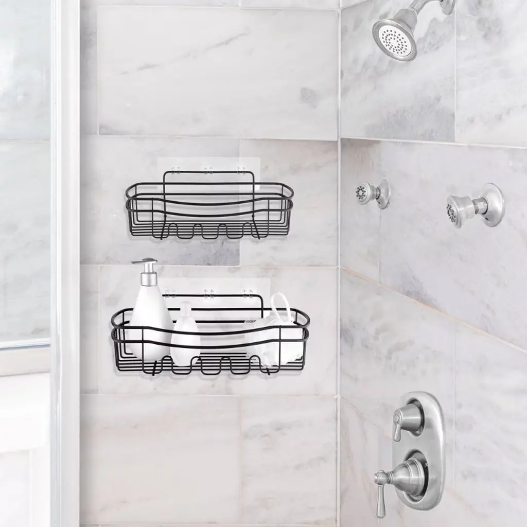 This 2-piece Bowery Black rectangular shower shelf can store everyday items such as shampoo, conditioner, body wash, towels, bath sponges and more. Perfect for bathrooms, kitchens, etc., it can save you space and keep your room tidy. You can enjoy the long-term convenience of this shower mechanism. Wire design allows for better drainage.