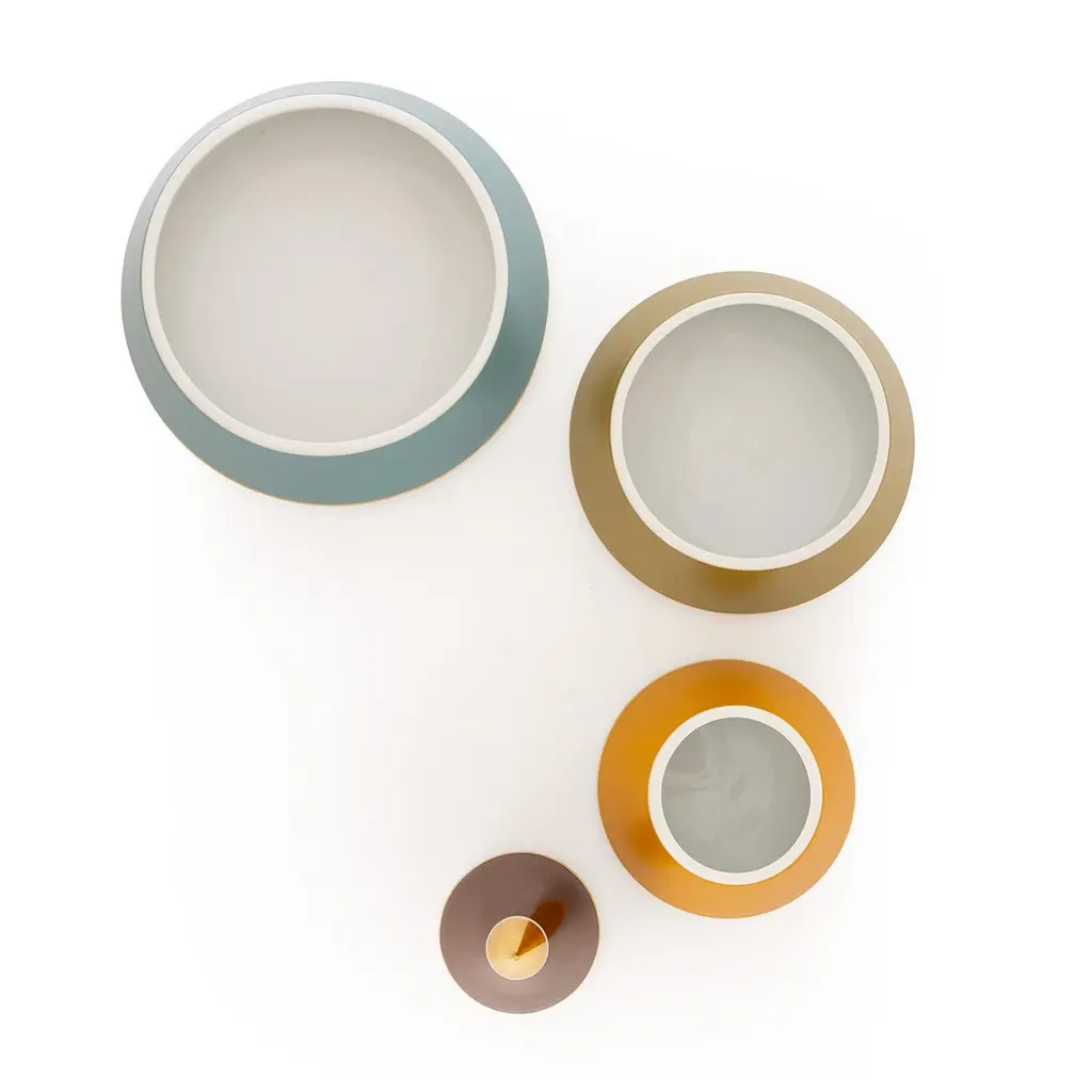 This porcelain pyramid is truly one-of-a-kind. Designed in a cone shape, each colorful layer opens to reveal storage for your precious small items. Finished in muted tones of brown, green, blue, and mustard with gold-plated detailing, it doubles as an eye-catching decorative piece for any room. Made in Portugal.