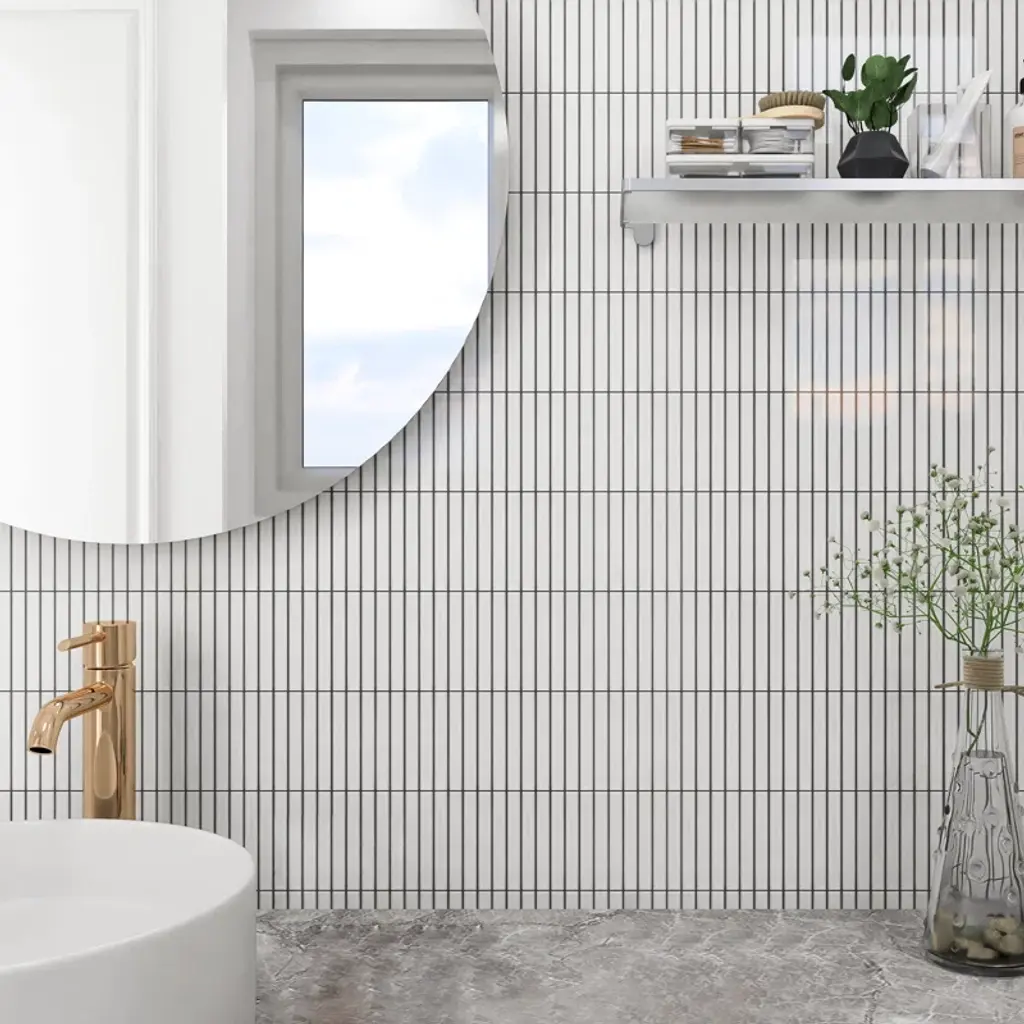 Porcetile 0.48" X 3.63" Stacked Glossy Porcelain Mosaic Wall And Floor Tile