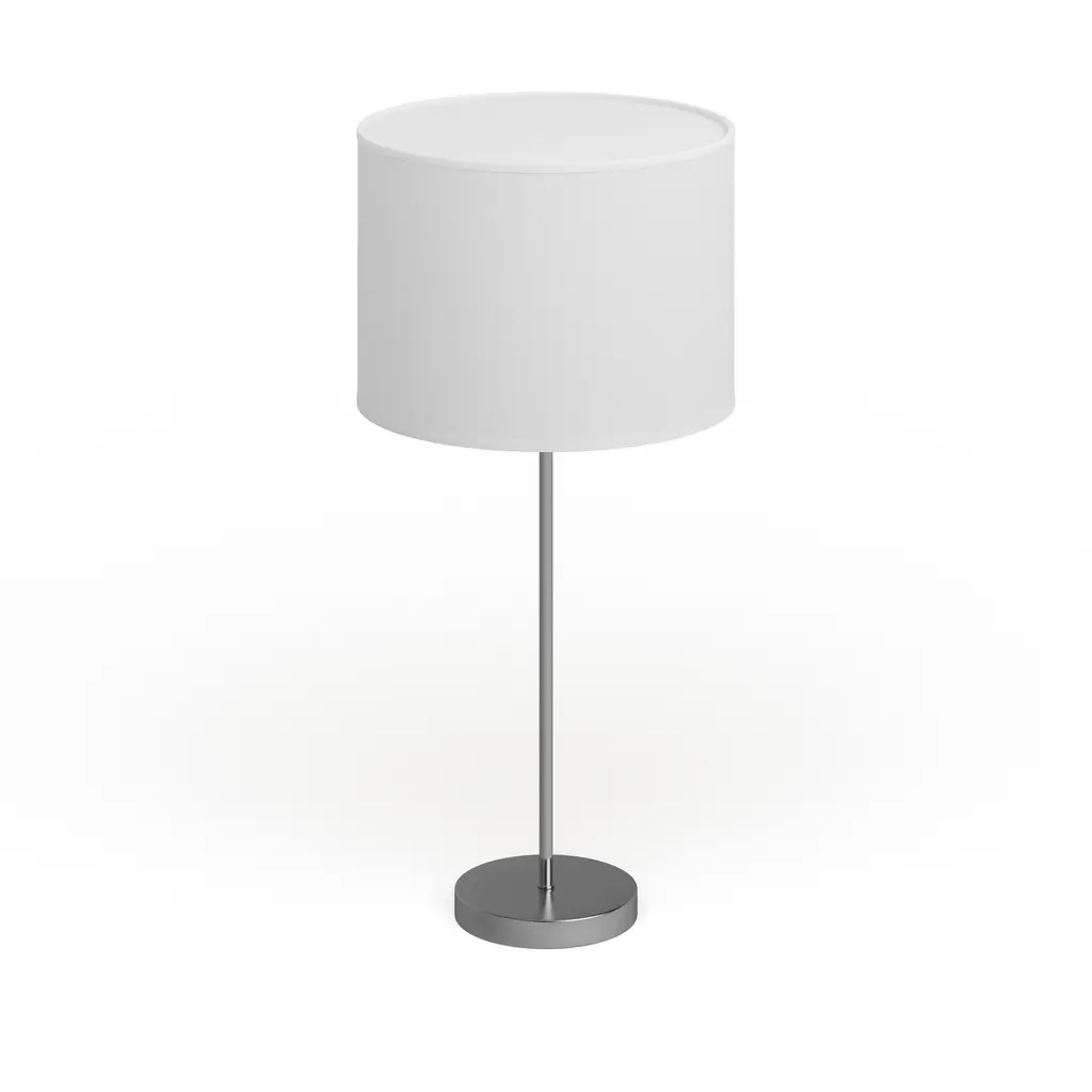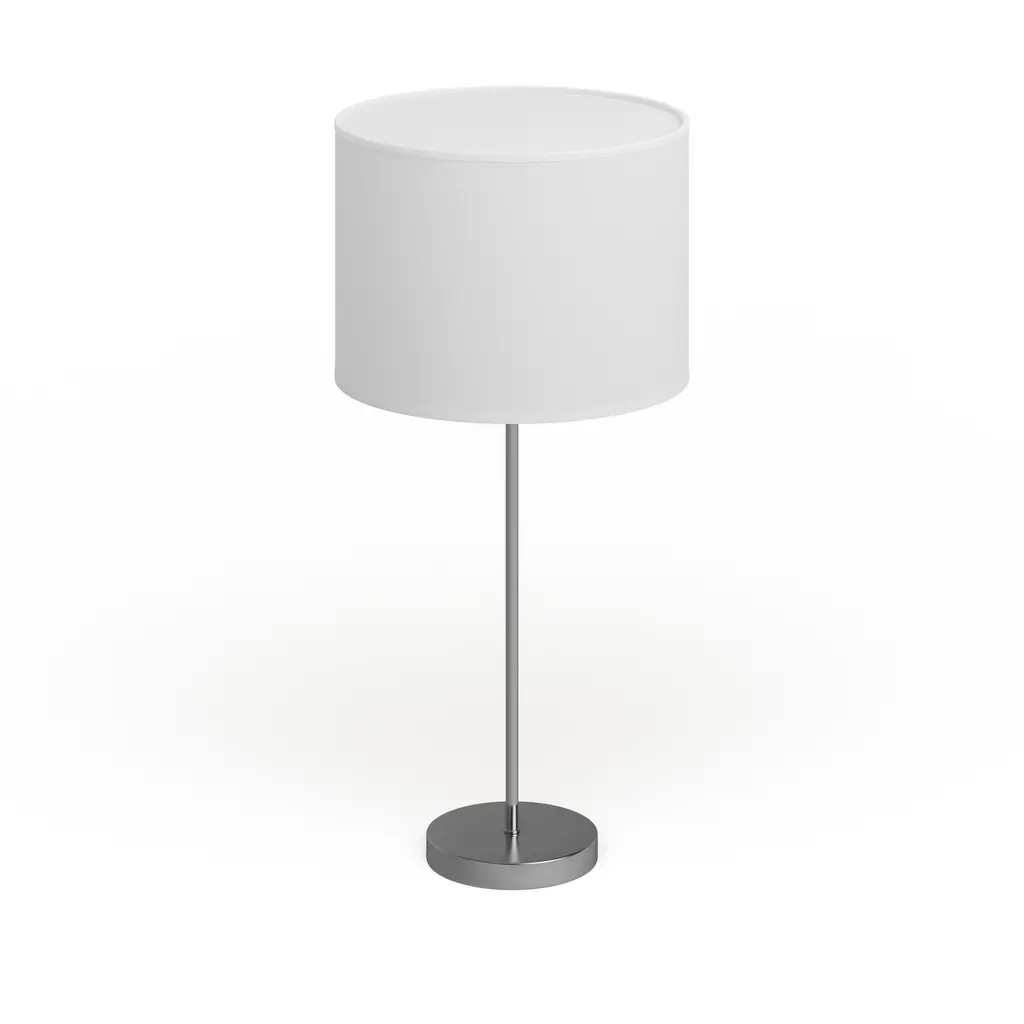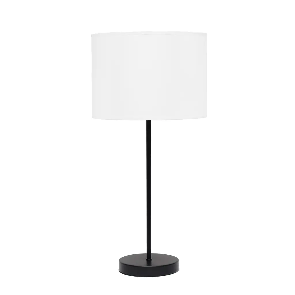 Give your home a contemporary look with this gorgeous lamp.The brushed nickel base and basic white or black shade make this lamp easy to pair with other furniture. This lamp will easily add a modern touch to any existing decor.Features:Requires 1 incandescent 60-watt light bulbSet includes 1 table lampUL listedFeatures iron base with fabric shadeShade has a drum shapeOn-off line switchContemporary styleShade is available in white or black23 inches high x 11 inches wide x 11 inches long