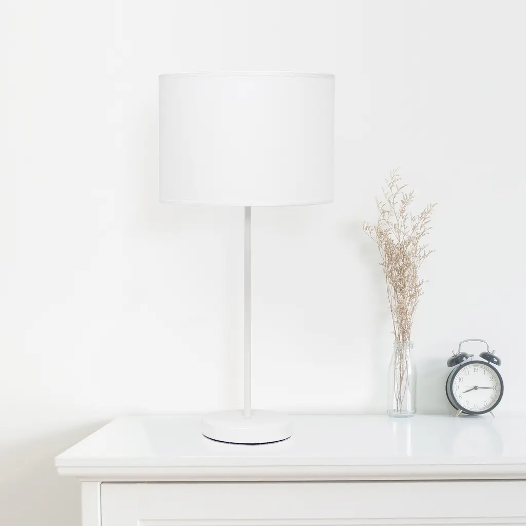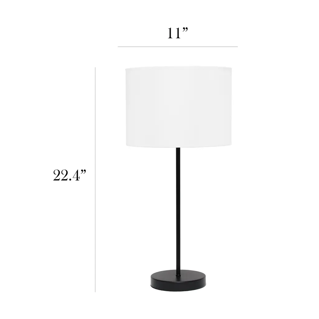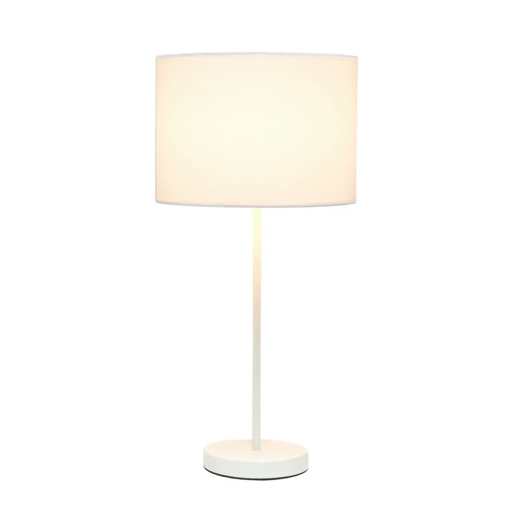 Give your home a contemporary look with this gorgeous lamp.The brushed nickel base and basic white or black shade make this lamp easy to pair with other furniture. This lamp will easily add a modern touch to any existing decor.Features:Requires 1 incandescent 60-watt light bulbSet includes 1 table lampUL listedFeatures iron base with fabric shadeShade has a drum shapeOn-off line switchContemporary styleShade is available in white or black23 inches high x 11 inches wide x 11 inches long