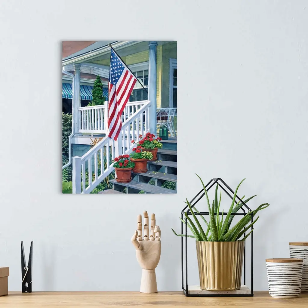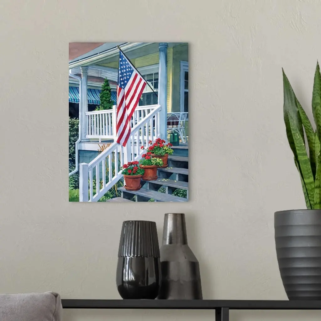 Porch With Flag wall art for home and office decor. Discover canvas art prints, photos, mural, big canvas art and framed wall art in GreatBigCanvas.com's varied collections.