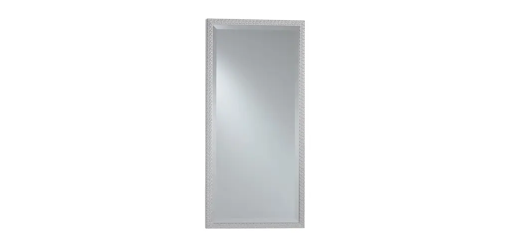 This Porcius wall mirror's frame has a textured profile finished in a lightly antiqued silver. The mirror also features a generous 1.25" bevel and can be hung horizontally or vertically.