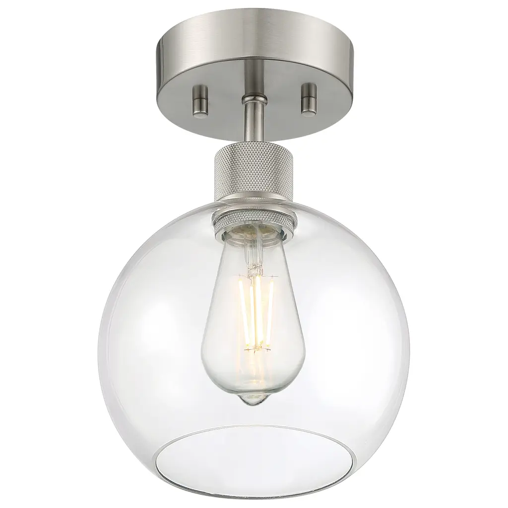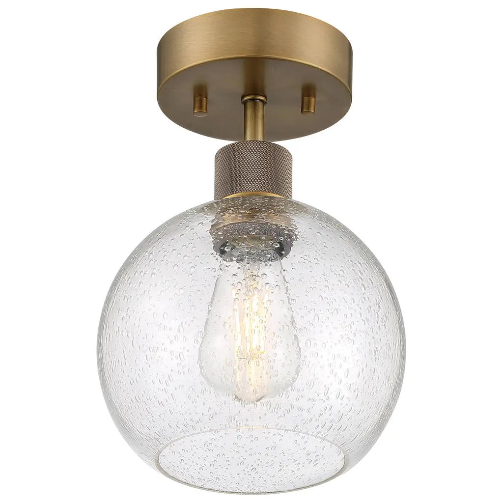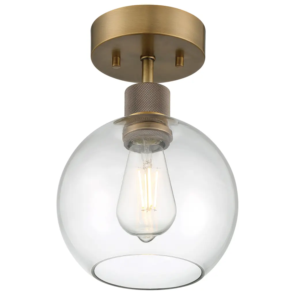Is your favorite burgundy calling your name, or is it just this burgundy glass light fixture? Rounded angles resembling an upside-down fishbowl add character to any room, the clear globe providing downward light that seems to pour out. Display this modern energy-efficient light in hallways, at the top of staircase landings, or in your bedroom.Ceiling, Contemporary, Delivered Lumens 600-700, Energy Efficient, Glass, Indoor, JA8/Title 24, Line Voltage, Modern, Semi-Flush, TransitionalETL (US/Canada) Listed, Energy Efficient, JA8-2016/Title 24, Title 20Color/Finish Options: Antique Brushed Brass, Brushed Steel, or Matte BlackGlass Options: Clear or SeededMaterial: SteelDimensions: 7.5 inch diameter x 12 inch heightWeight: 6 poundsSlope Ceiling Capable: NoBulb Shape: A-19 (RLED)Socket Type: E-26Bulb Included: Yes