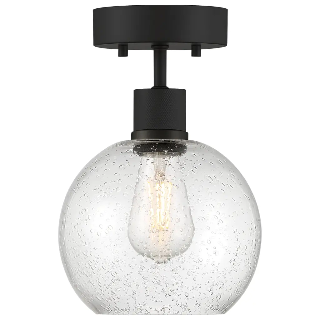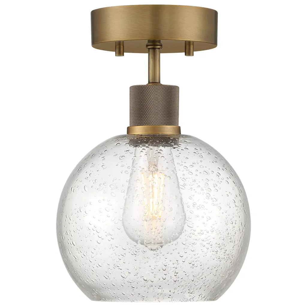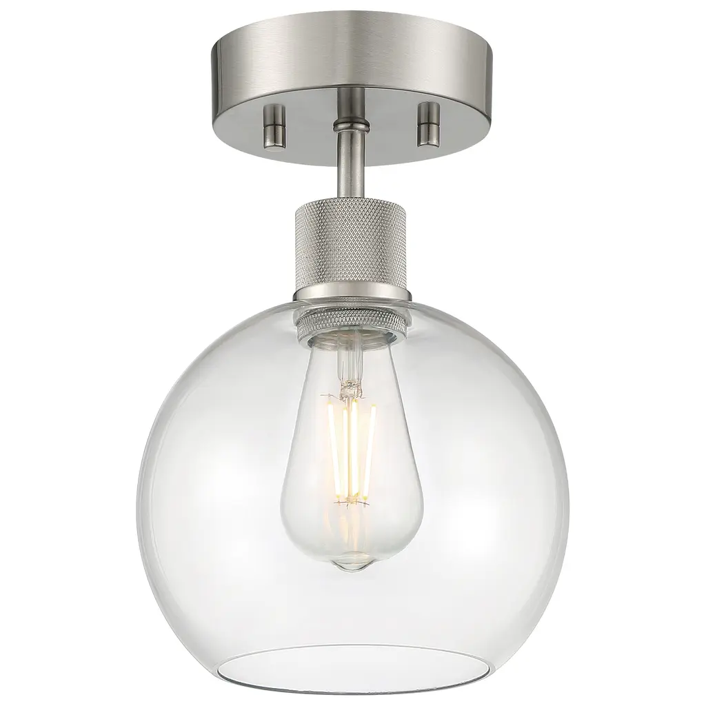 Is your favorite burgundy calling your name, or is it just this burgundy glass light fixture? Rounded angles resembling an upside-down fishbowl add character to any room, the clear globe providing downward light that seems to pour out. Display this modern energy-efficient light in hallways, at the top of staircase landings, or in your bedroom.Ceiling, Contemporary, Delivered Lumens 600-700, Energy Efficient, Glass, Indoor, JA8/Title 24, Line Voltage, Modern, Semi-Flush, TransitionalETL (US/Canada) Listed, Energy Efficient, JA8-2016/Title 24, Title 20Color/Finish Options: Antique Brushed Brass, Brushed Steel, or Matte BlackGlass Options: Clear or SeededMaterial: SteelDimensions: 7.5 inch diameter x 12 inch heightWeight: 6 poundsSlope Ceiling Capable: NoBulb Shape: A-19 (RLED)Socket Type: E-26Bulb Included: Yes
