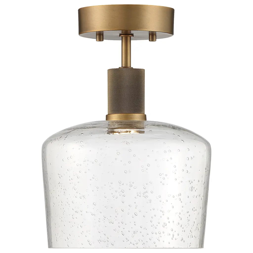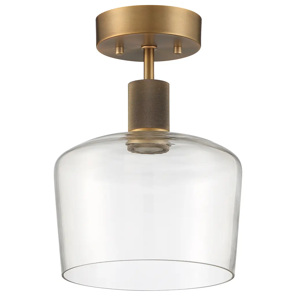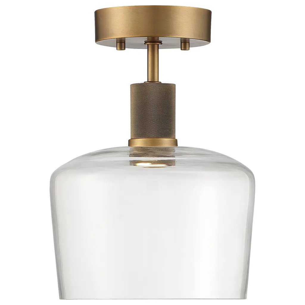 Is your favorite chardonnay calling your name, or is it just this chardonnay glass light fixture? Smooth and curved angles add character to any room, the clear globe providing downward light that seems to pour out of its chardonnay glass. Install this modern LED light fixture in hallways, at the top of staircase landings, or in your living room.Ceiling, Contemporary, Delivered Lumens 500-600, Energy Efficient, Indoor, JA8/Title 24, Multi-Family, Semi-Flush, TransitionalETL (US/Canada) Listed, Energy Efficient, JA8-2016/Title 24Color/Finish Options: Antique Brushed Brass, Brushed Steel, or Matte BlackGlass Options: Clear or SeededMaterial: SteelDimensions: 9 inch diameter x 11.75 inch heightWeight: 6 poundsSlope Ceiling Capable: NoBulb Shape: Intergrated LEDSocket Type: Intergrated LEDBulb Included: Yes
