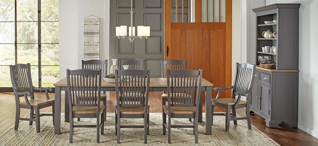 The serenity of the sea and the simplicity of cottage living come together in the Port Townsend Dining Collection. Combining subtle hints of coastal living with simple lines and farmhouse elements, this dining collection will compliment homes from coast to coast. Featuring solid New Zealand Pine throughout, the wire brushed Seaside Pine finish reveals the natural beauty of the wood on all surfaces and reflects a windswept patina. The perfectly contrasting Gull Grey painted finish and brushed nickel hardware completes the look to turn your dining room into a relaxing and inviting retreat.