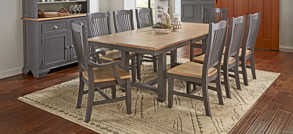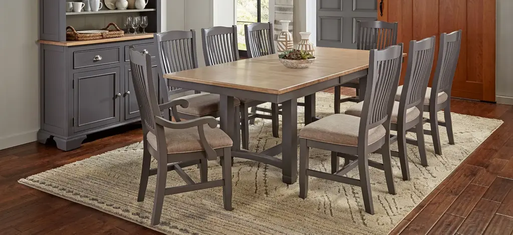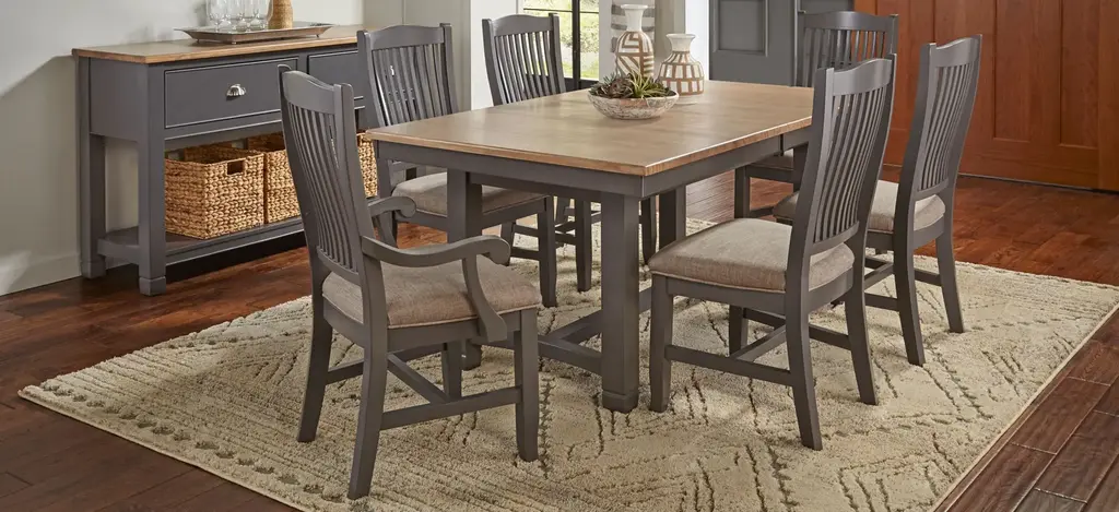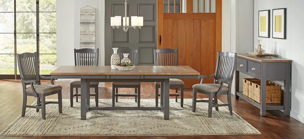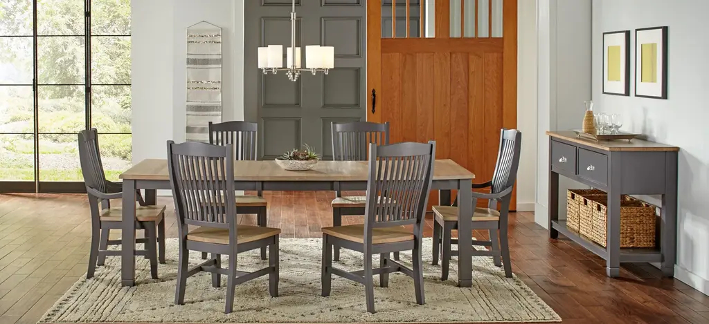 The serenity of the sea and the simplicity of cottage living come together in the Port Townsend Dining Collection. Combining subtle hints of coastal living with simple lines and farmhouse elements, this dining collection will compliment homes from coast to coast. Featuring solid New Zealand Pine throughout, the wire brushed Seaside Pine finish reveals the natural beauty of the wood on all surfaces and reflects a windswept patina. The perfectly contrasting Gull Grey painted finish and brushed nickel hardware completes the look to turn your dining room into a relaxing and inviting retreat.