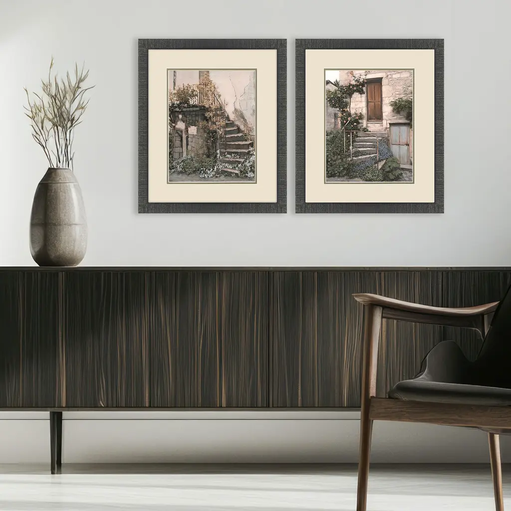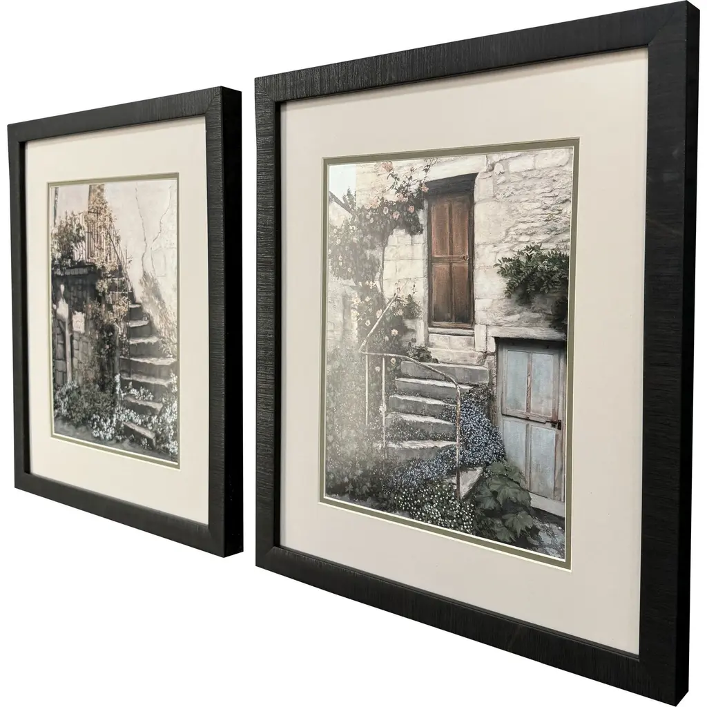 European homes are adorned with sprawling flower displays. Matted in putty and framed in a flat profile molding with a dark espresso wood finish.