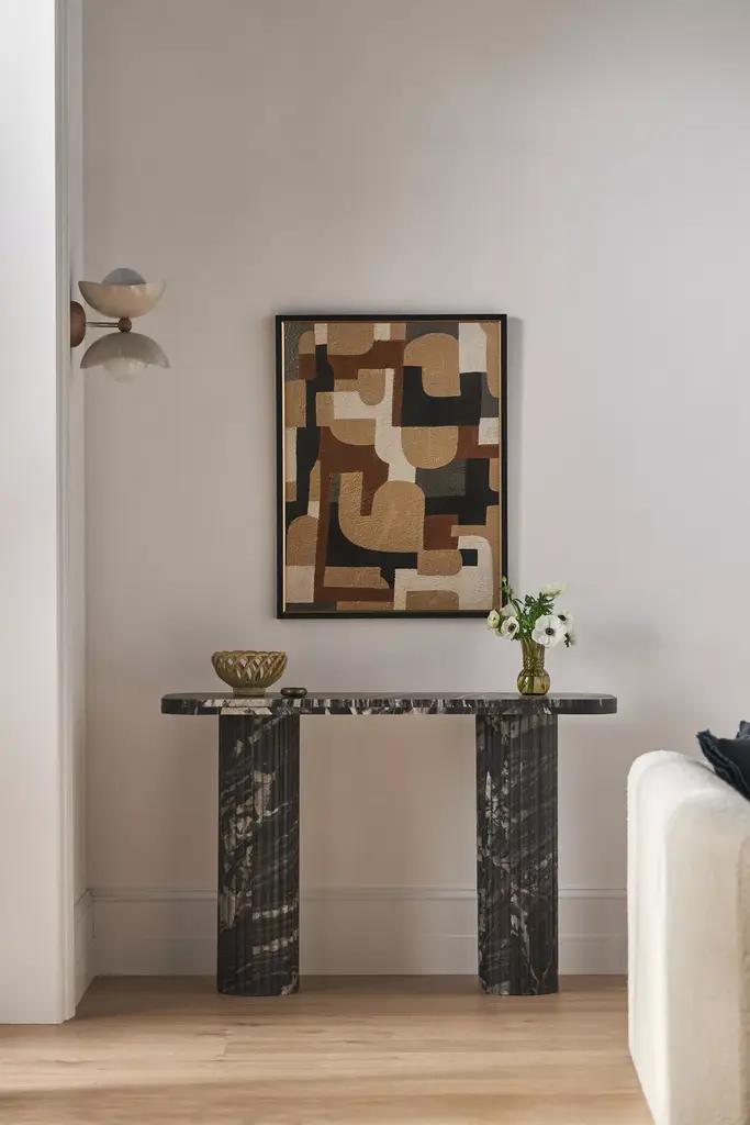 The Porticello Vanity is an elegant addition to any bedroom, blending style and functionality seamlessly. Crafted with meticulous attention to detail, this vanity features a luxurious Rovere Moka finish, accented with Materico Basalto Lucido elements, giving it a refined and sophisticated look.
