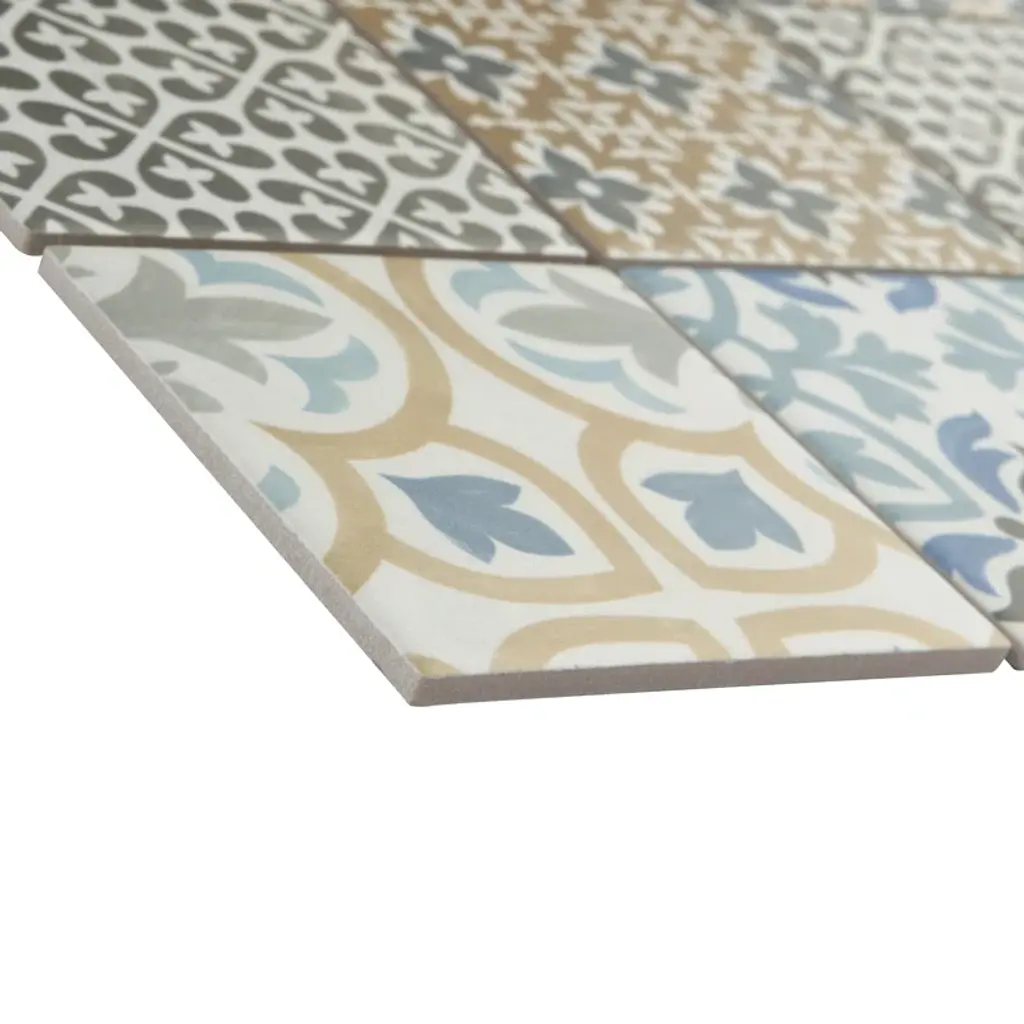 The porcelain mosaic tile in blue, gray, and yellow ties together the intricate look of individual tiles with the easy installation of a mosaic. This patchwork mosaic features four varying old-world designs that have gray and goldenrod accents with muted shades of blue. The multi-patterned tile radiates vintage charm and offers a satin finish that adds extra character. Its impervious and frost-resistant features make this an ideal tile for both indoor and outdoor residential and commercial use. Tile is the better choice for your space. This tile is made from natural ingredients, making it a healthy choice as it is free from allergens, VOCs, formaldehyde, and PVC.