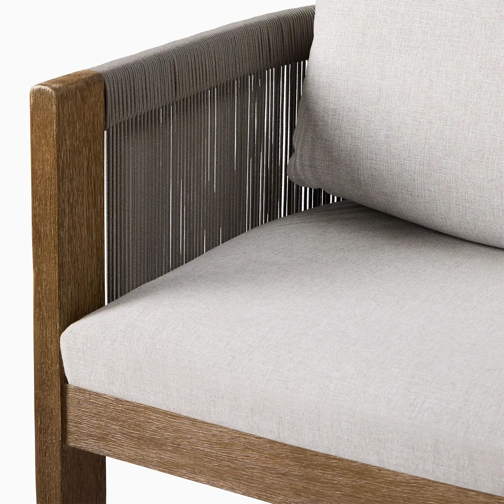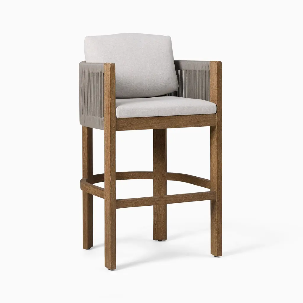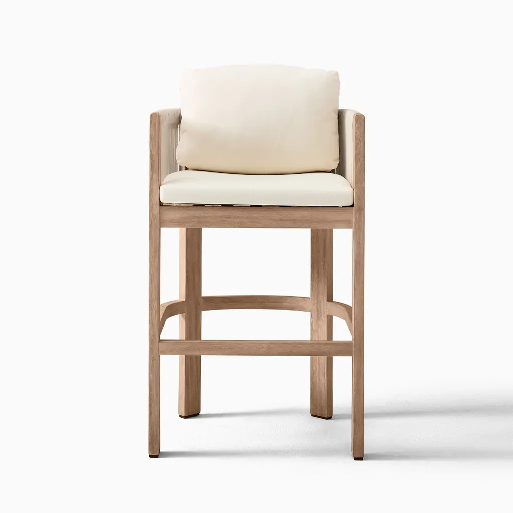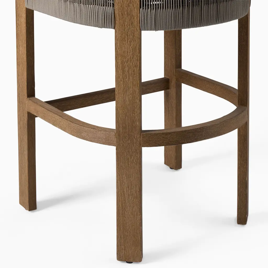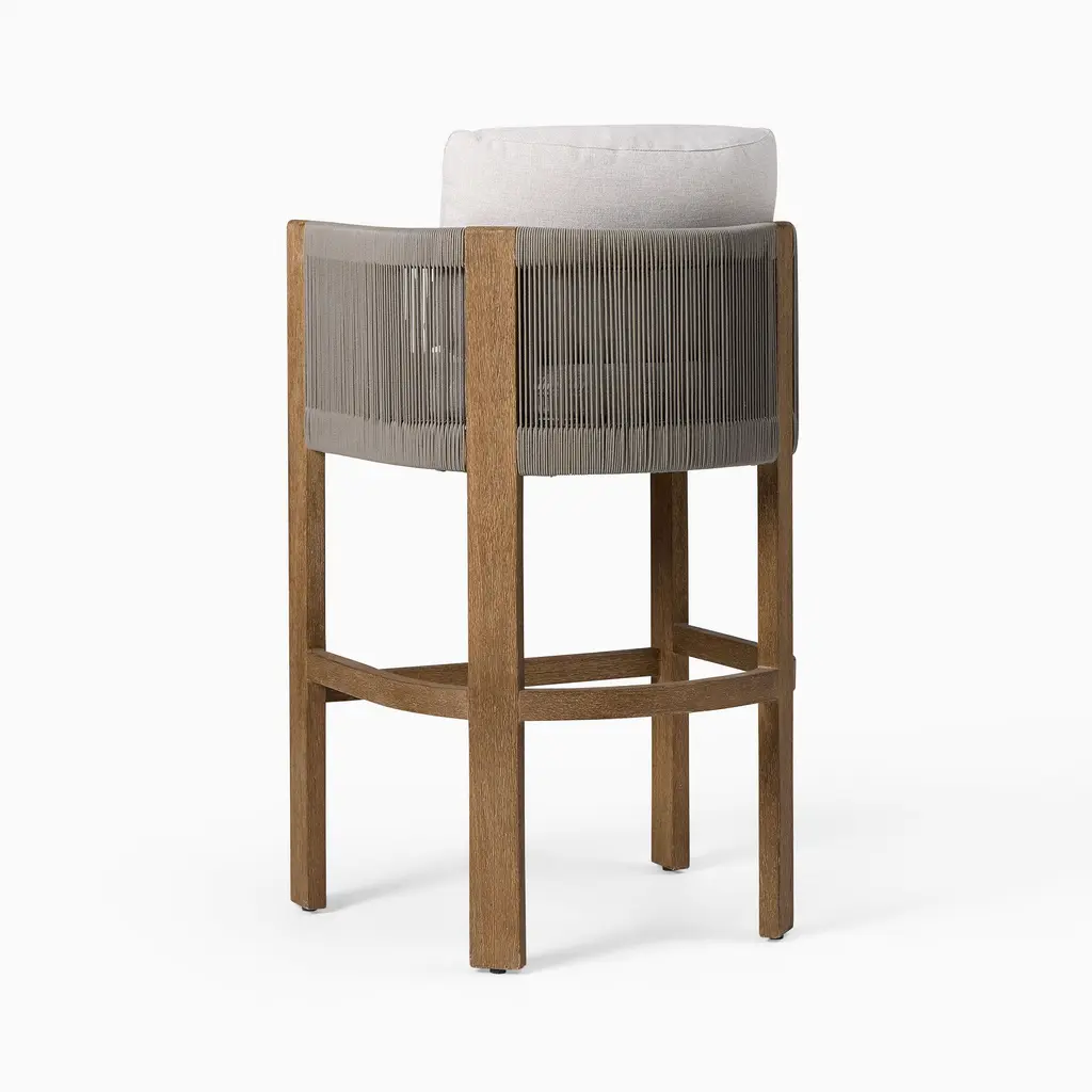 Modern cording pairs beautifully with mahogany wood. Weather-resistant cushions offer cozy comfort. Brings a contemporary look to your outdoor bar. Contract Grade, so you know it's built to last.