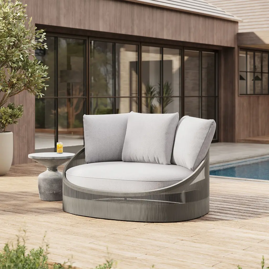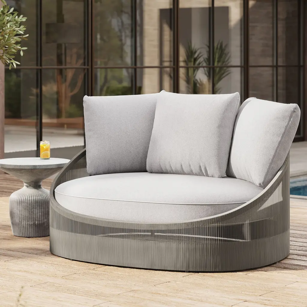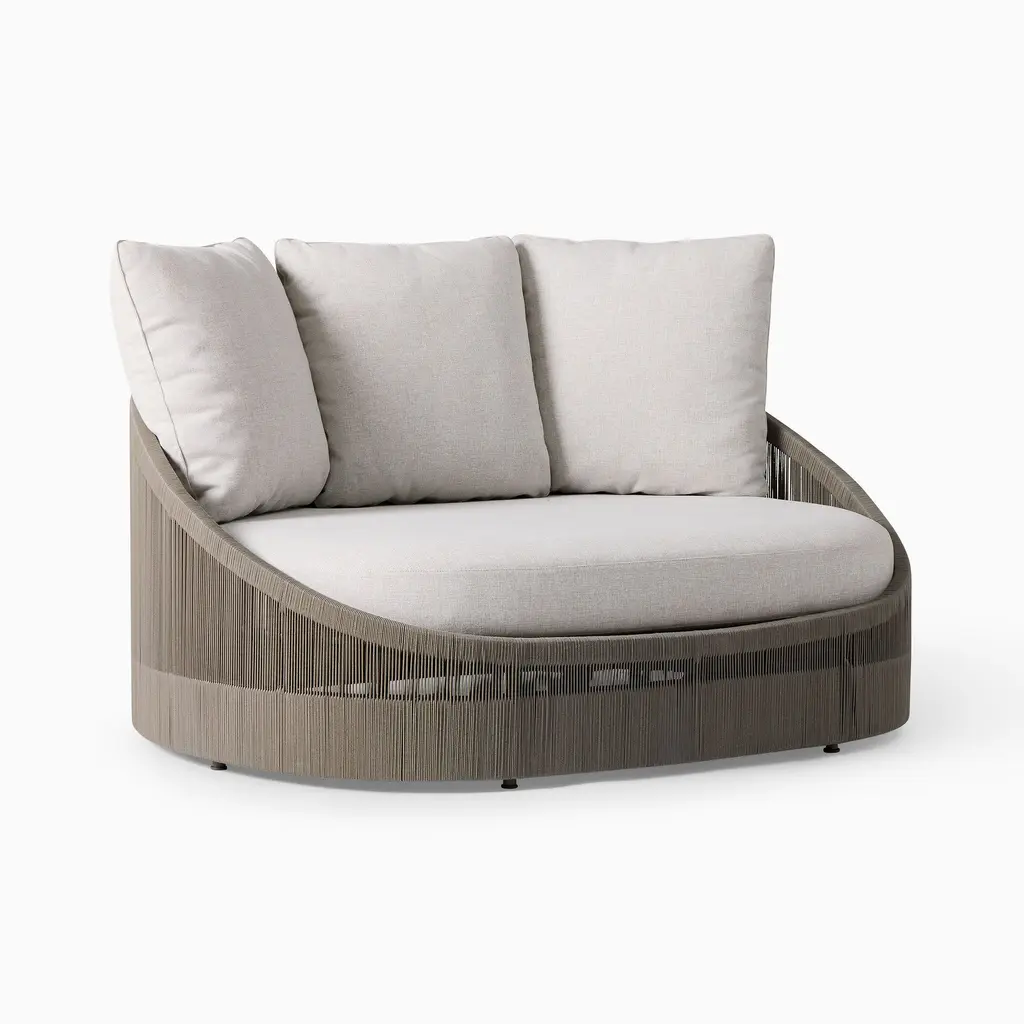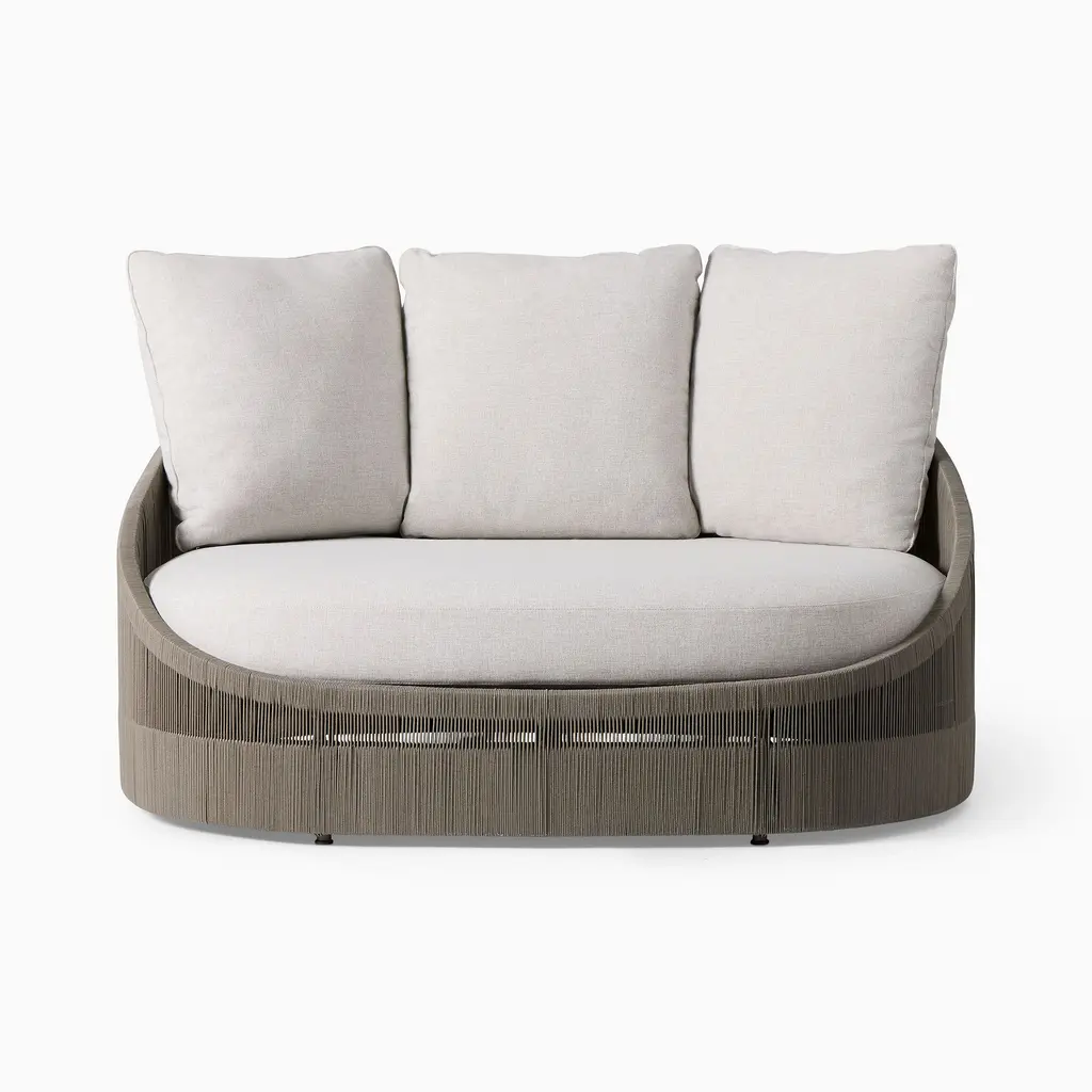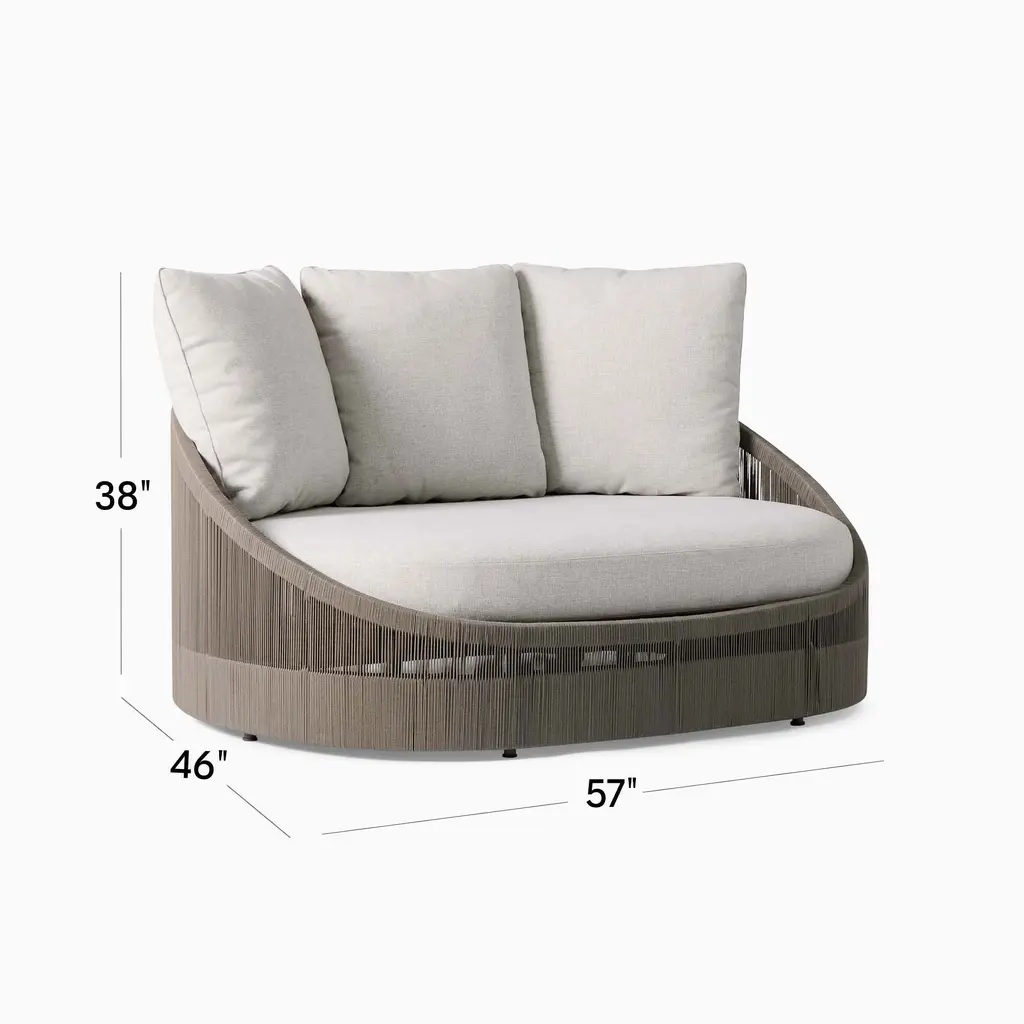 Extra wide frame covered in head-to-toe woven cording. Weather-resistant cushions offer cozy comfort. Deep seat is relaxation ready for up to two people. Contract Grade, so you know it's built to last.