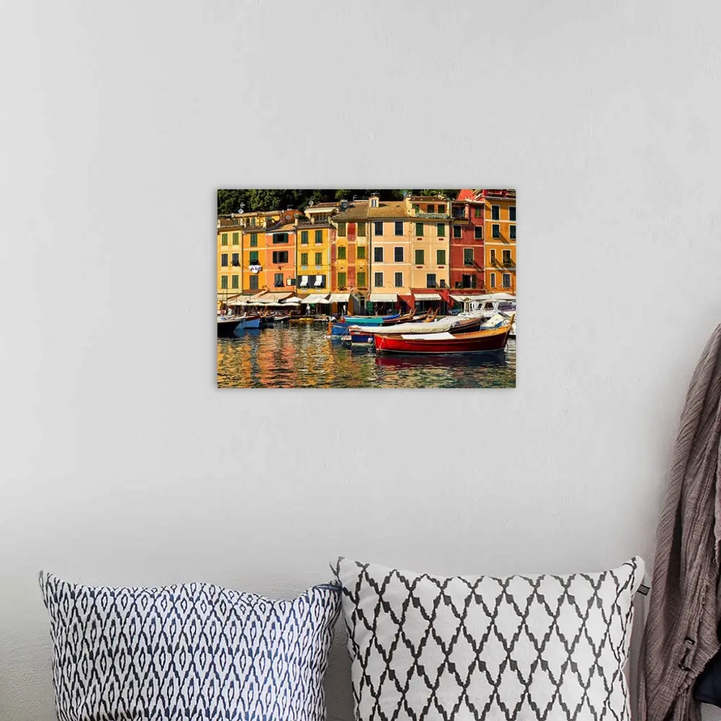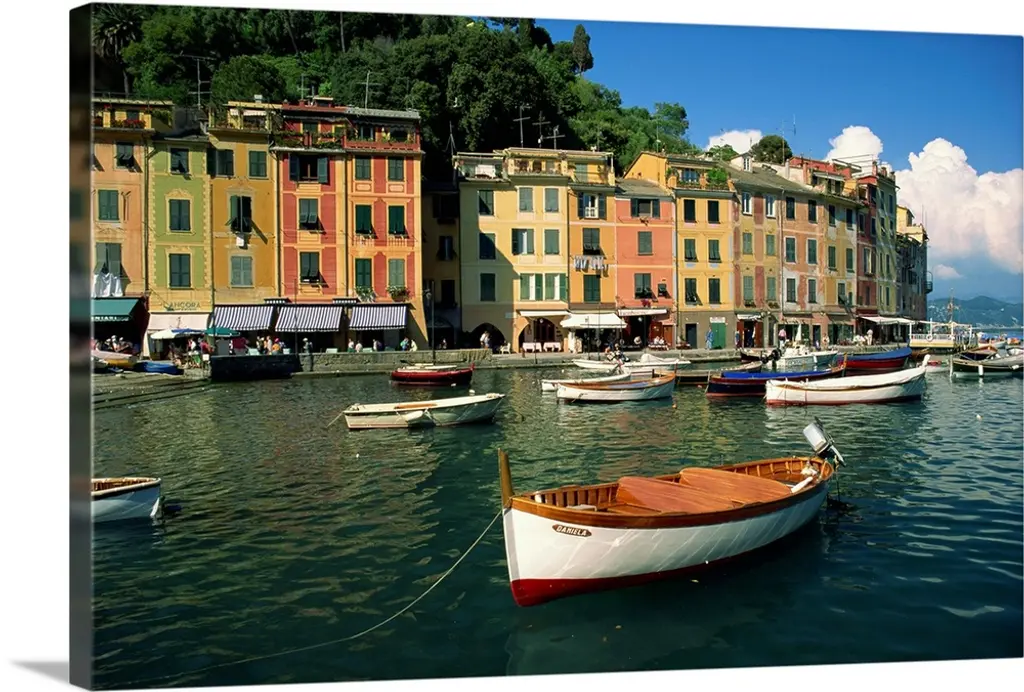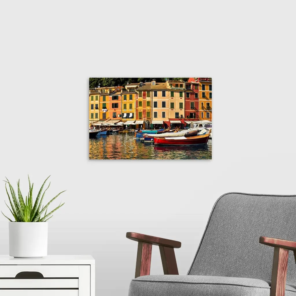 Small boats and colorful old houses in Portofino Harbor, Liguria, Italy.