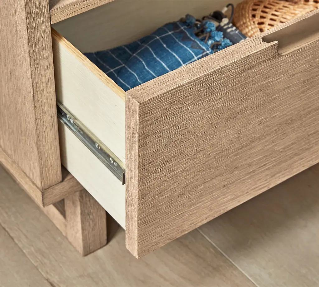 Minimalist and modern. Portola's Scandinavian-inspired design is a study of simple lines. A less is more approach with a wood frame in our exclusive Seadrift finish for plenty of warmth.