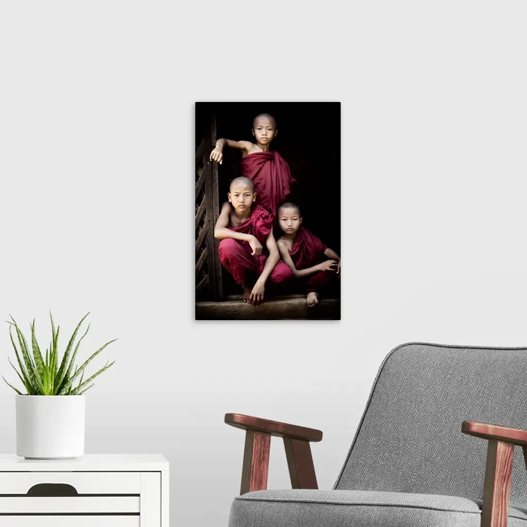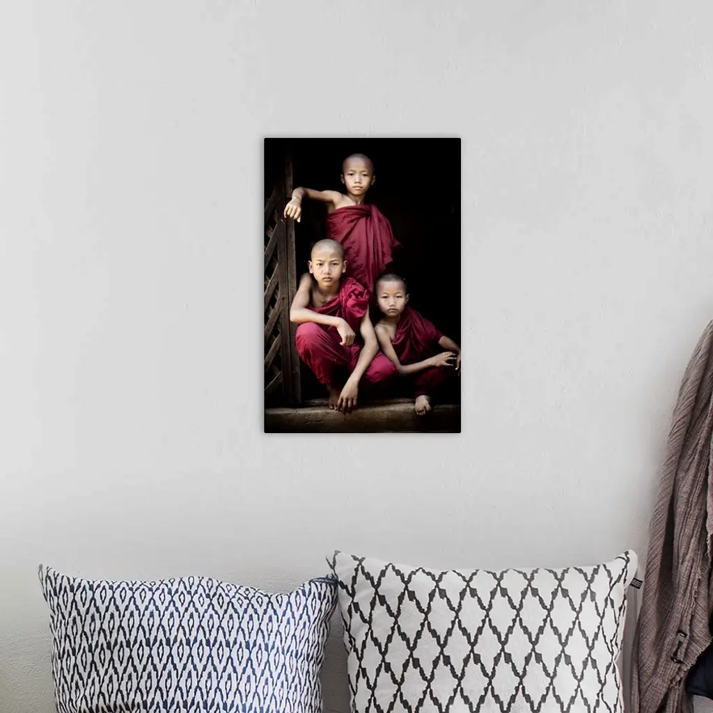 Portrait Of Three Young Monks In Their Monastery, Bagan, Burma