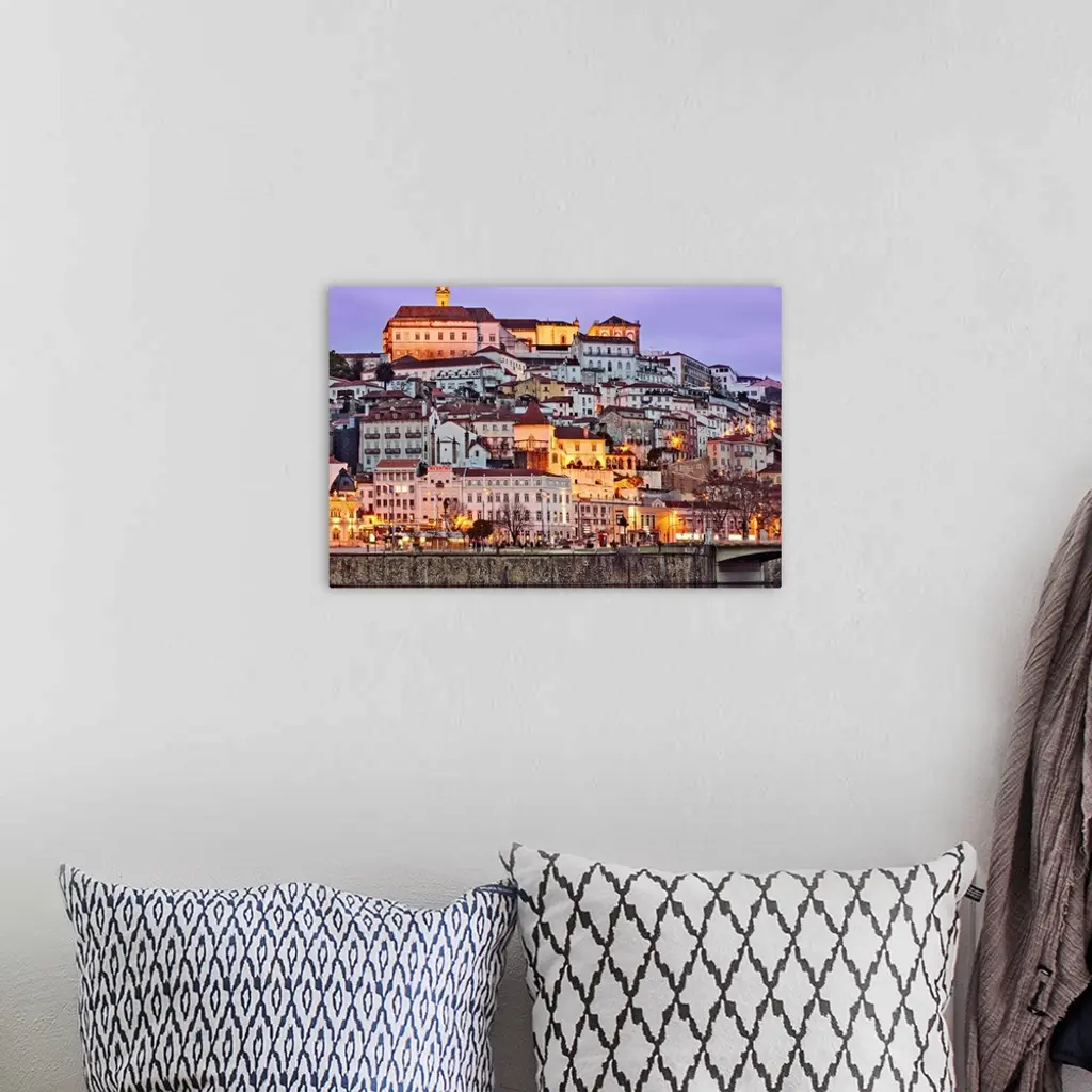 Portugal, Baixo Mondego, Coimbra, Twilight View Of The Medieval City Center