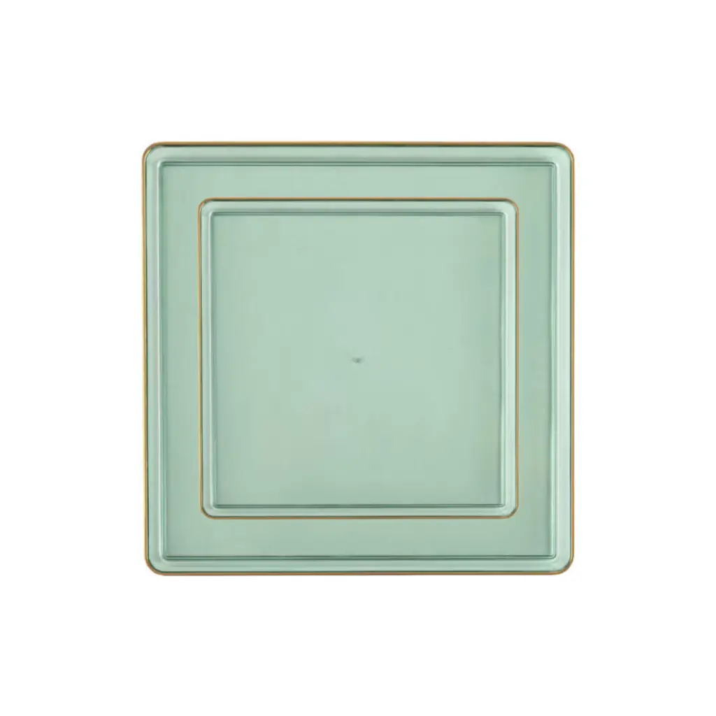 Posh Setting 420 Piece Green And Gold Plastic Party Bundle - Square Edge (60 Settings)