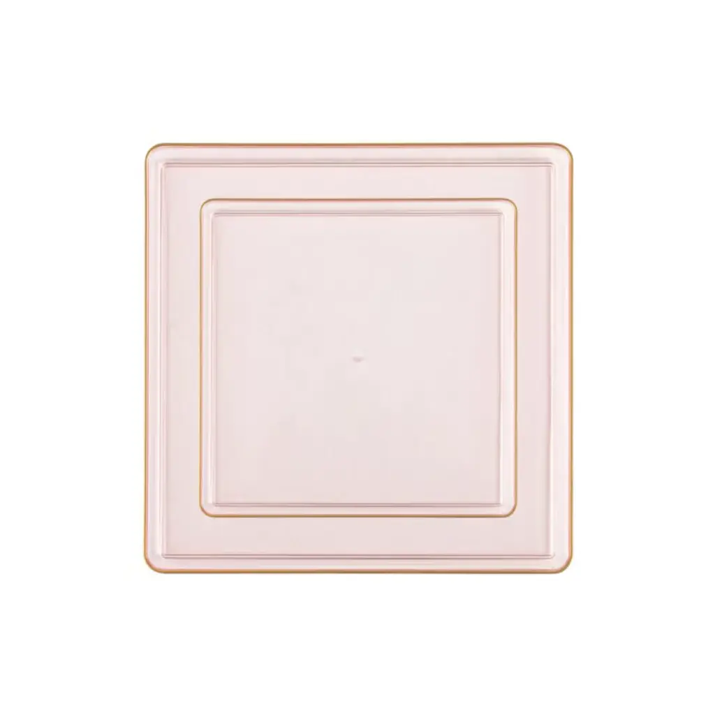 Posh Setting 420 Piece Pink And Gold Plastic Party Bundle - Square Edge (60 Settings)