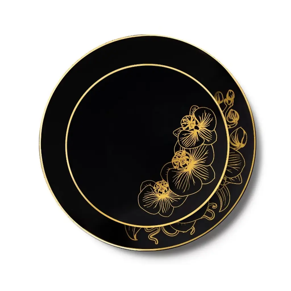Posh Setting 448 Piece Black And Gold Plastic Party Bundle - Orchid (64 Settings)