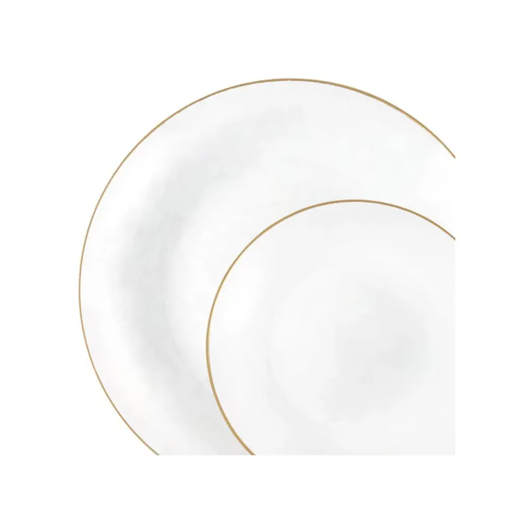 Posh Setting 840 Piece Transparent White And Gold Plastic Party Bundle - Organic Hammered (120 Settings)