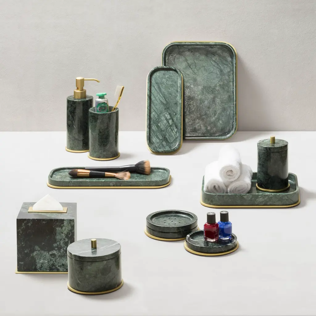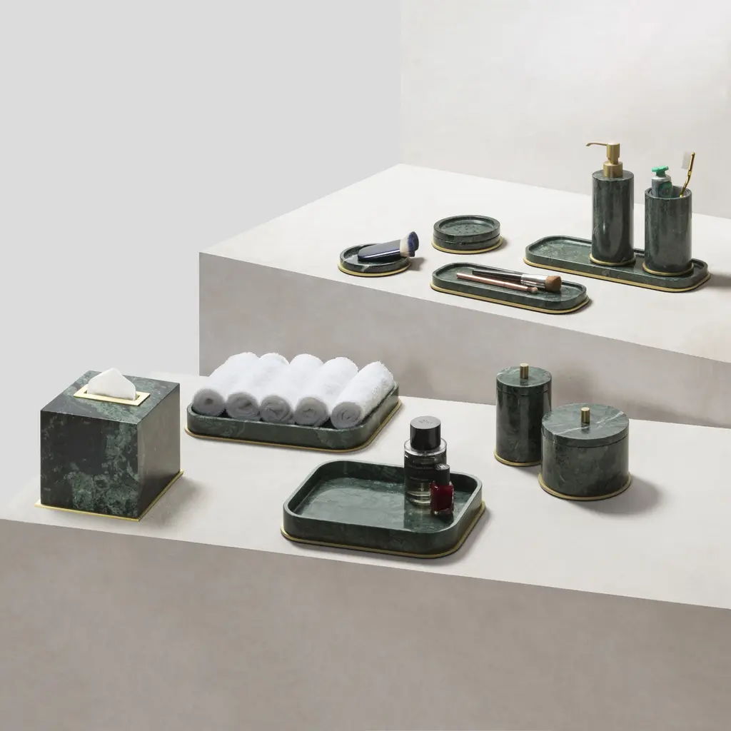 Marble structure with brass base frame and top insert. Non-slip waterproof rubber base underneath. Other metal and marble finishes are available. Please ask Concierge for details.