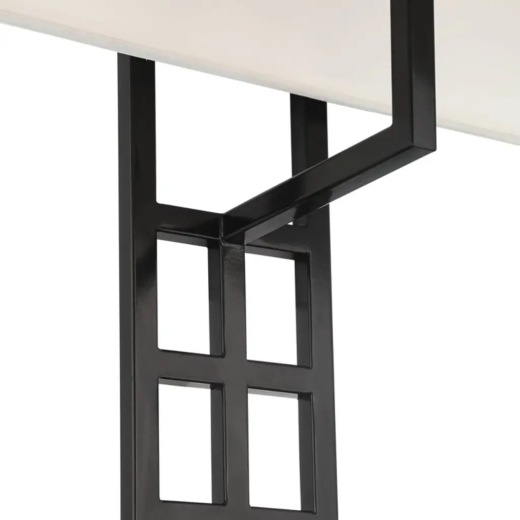 Possini Euro Design Ventano Modern Wall Lamps Set Of 2 Black Plug-in 16" Fixture White Linen Fabric Shades For Bedroom Mirror