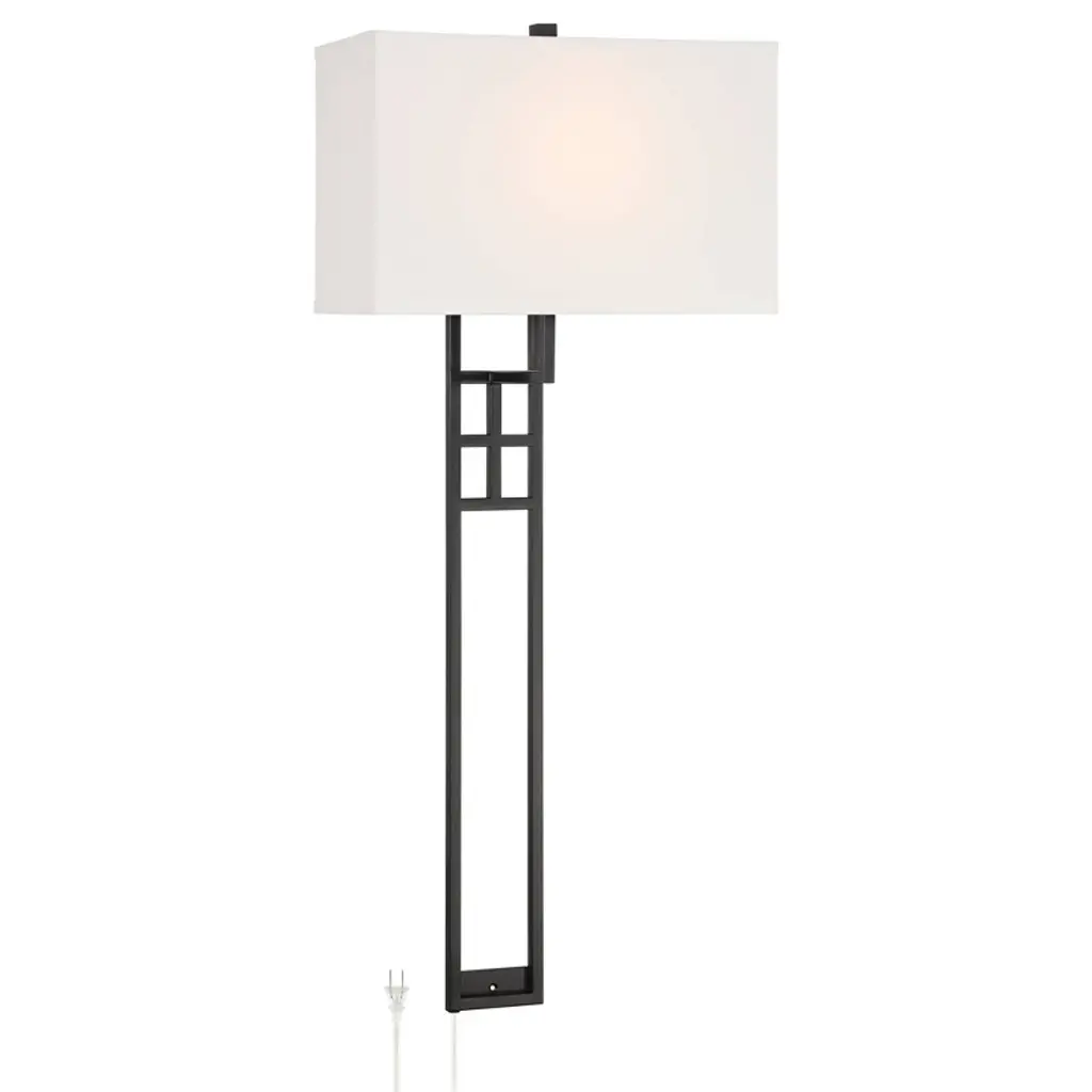 Simply attach these wall lamps to any wall and plug-in. From the Possini Euro Design collection, the set has a transitional style and is designed to allow you to enjoy full lighting without using valuable table or floor space. Crafted from metal and finished in matte black, this designs are topped off with a linen box shade.